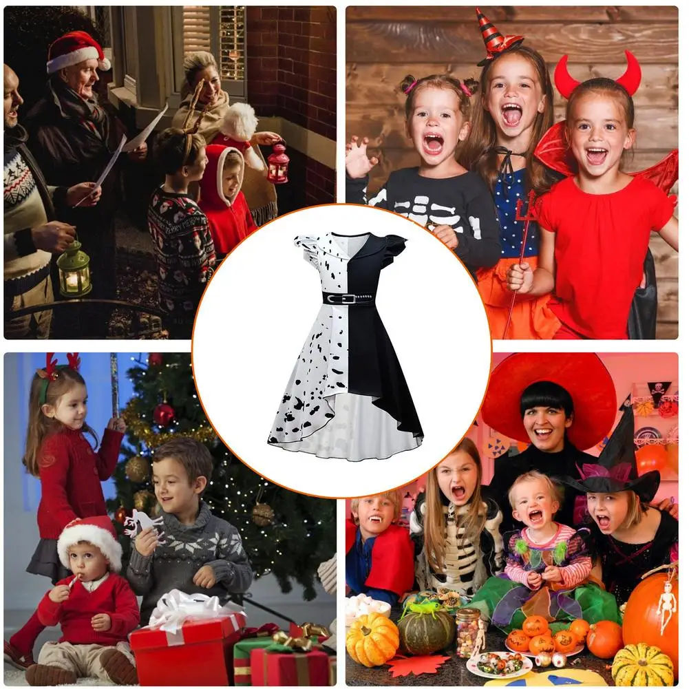 Платье для девочек, платье для костюмированной вечеринки на Хэллоуин, платье для вечеринок, костюм, представление на Хэллоуин, костюм черно-белой ведьмы куила