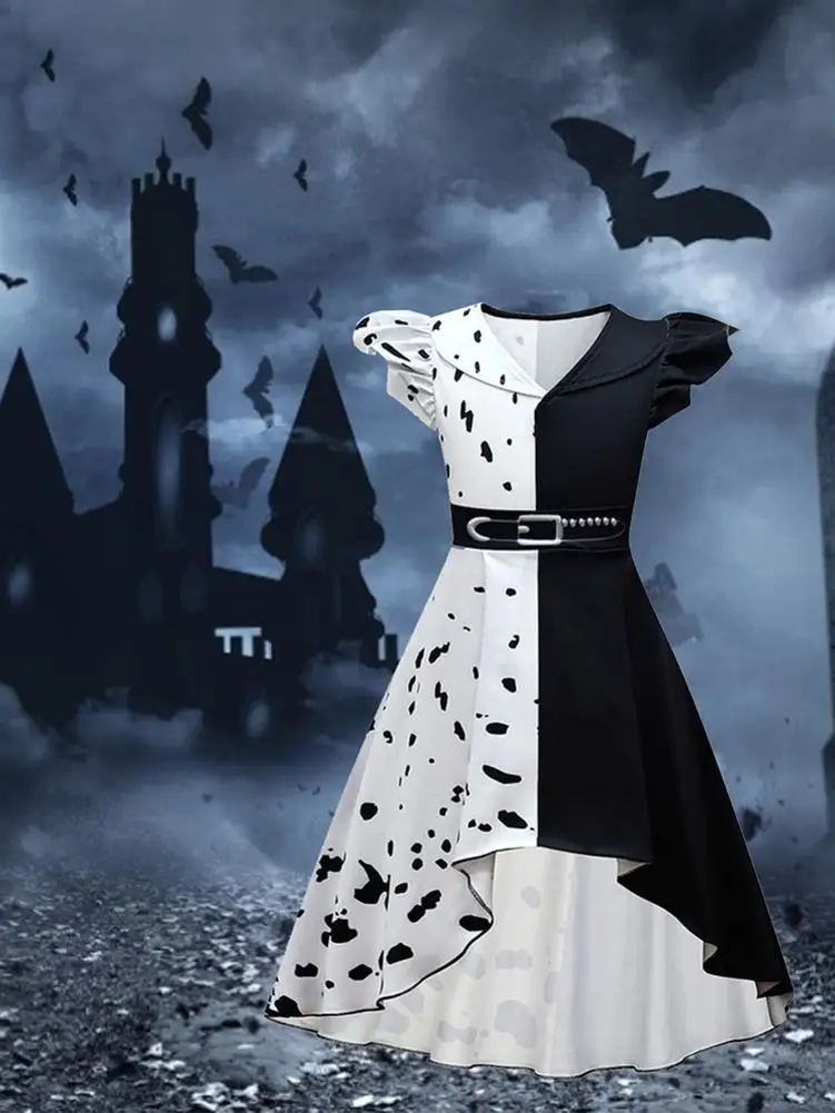 2022 Хэллоуин Детская яркая фотография длинное черно-белое платье с...