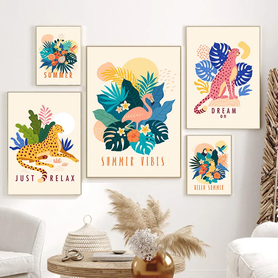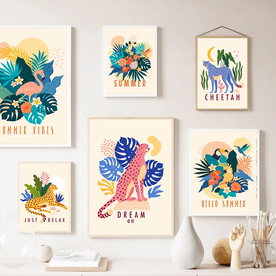 Настенная картина с изображением джунглей Лев гепарда тигра листья ...