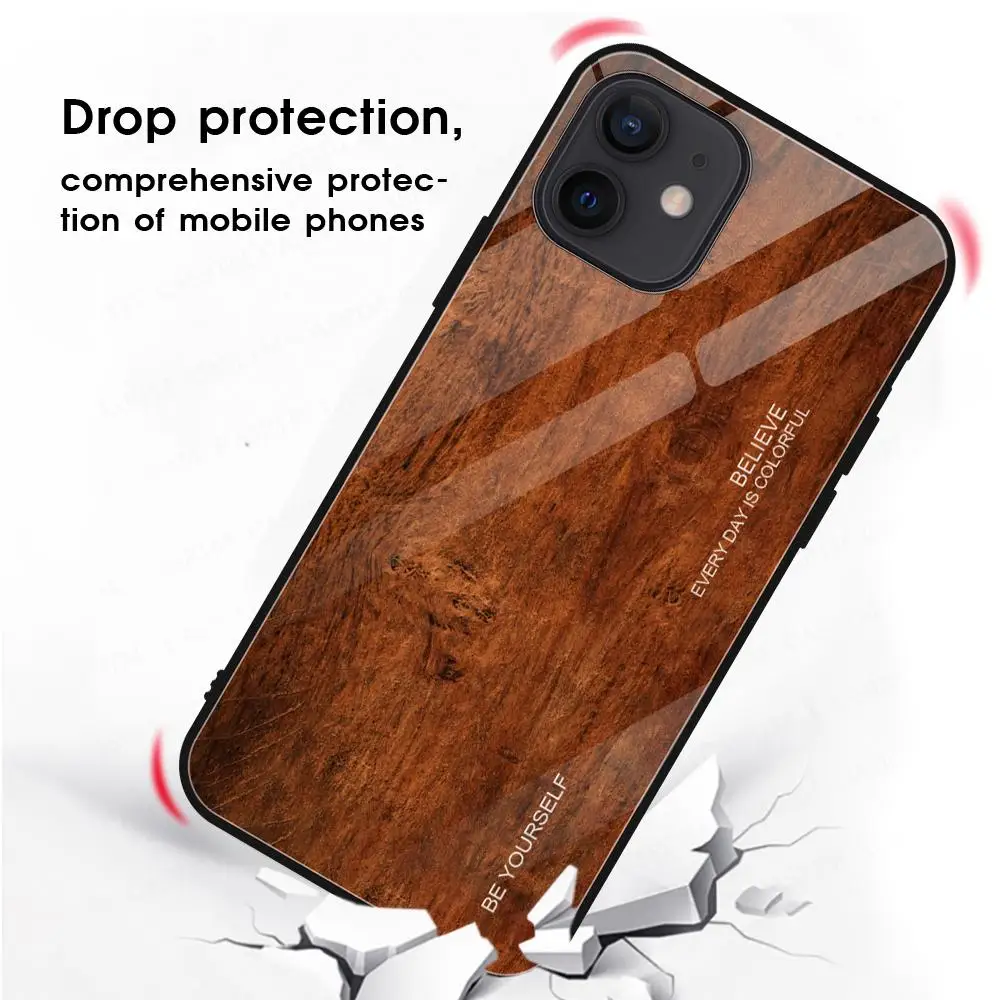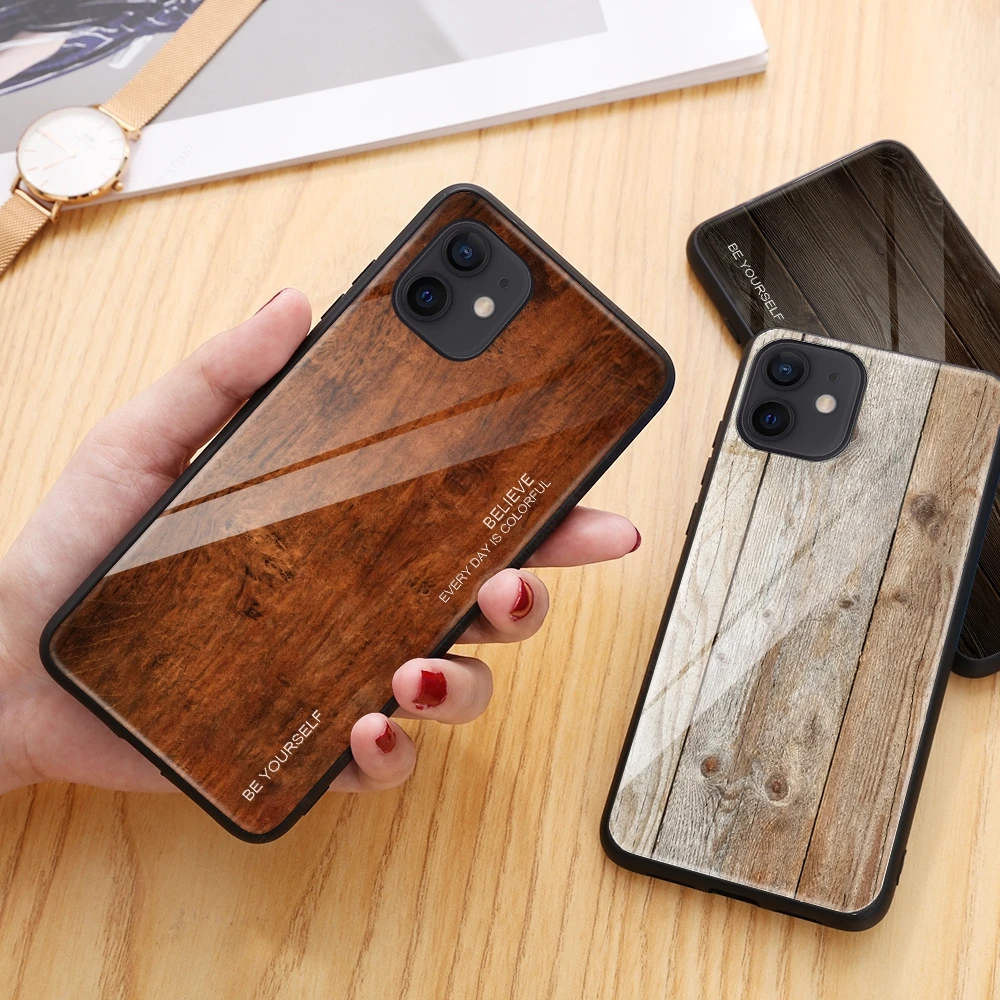 Чехол из закаленного стекла с текстурой древесины для телефона IPhone 13 Pro Maxiphone 13 Pro13 Mini, чехол из закаленного стекла для IPhone 1212 Mini, чехол