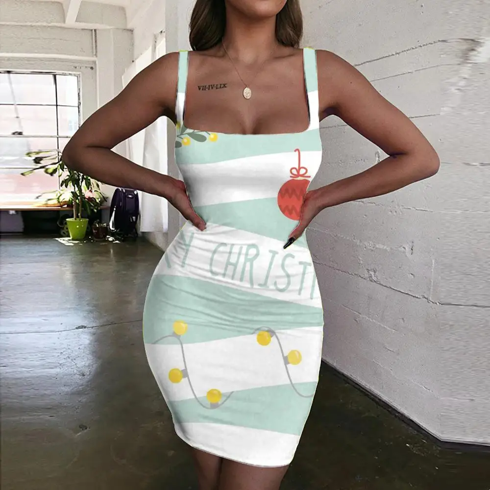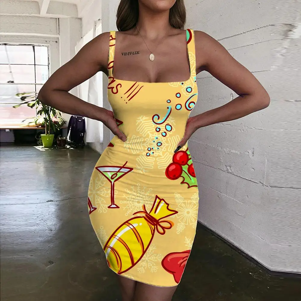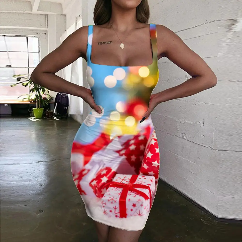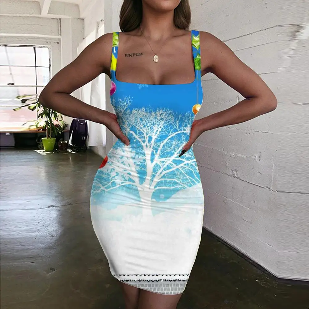 Женское рождественское платье KYKU, летнее облегающее платье без рукавов с 3D-принтом снега и лямкой на шее