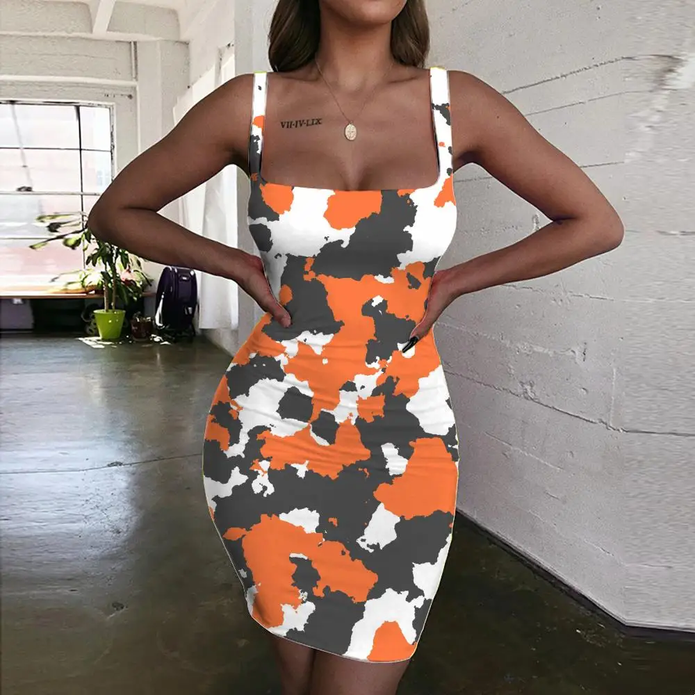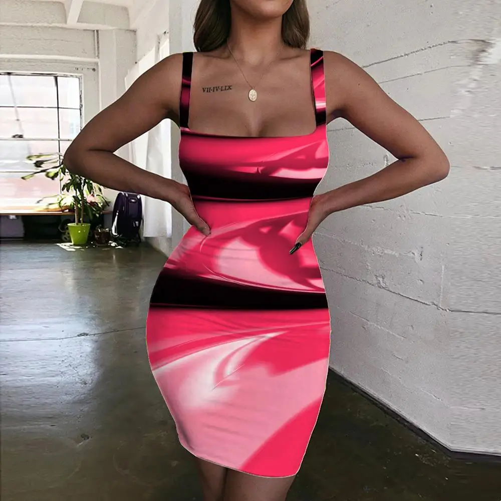 Платье женское неоновое с абстрактным 3D-принтом, на бретелях