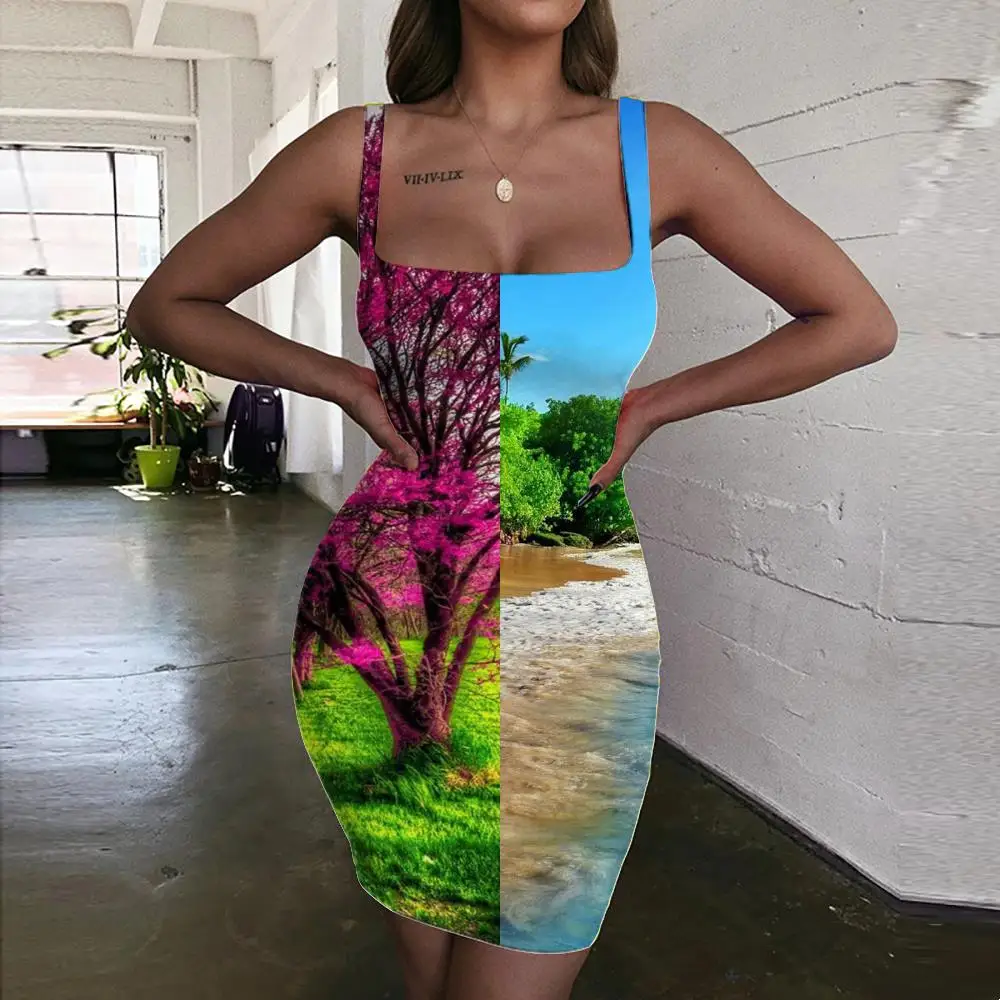 Женское облегающее платье KYKU, летнее пляжное платье с 3D-принтом ...