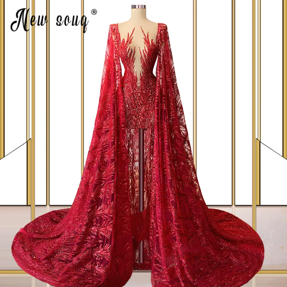 Женское вечернее платье с длинным рукавом, красное платье с глубоким V-образным вырезом в стиле Звезд, платье для свадьбы, платье для невесты, Дубай, 2021