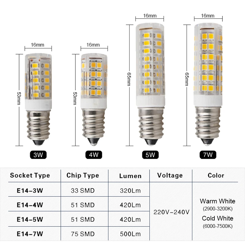 Светодиодная лампа 3 Вт, 4 Вт, 5 Вт, 7 Вт, E14, 220 В переменного т...