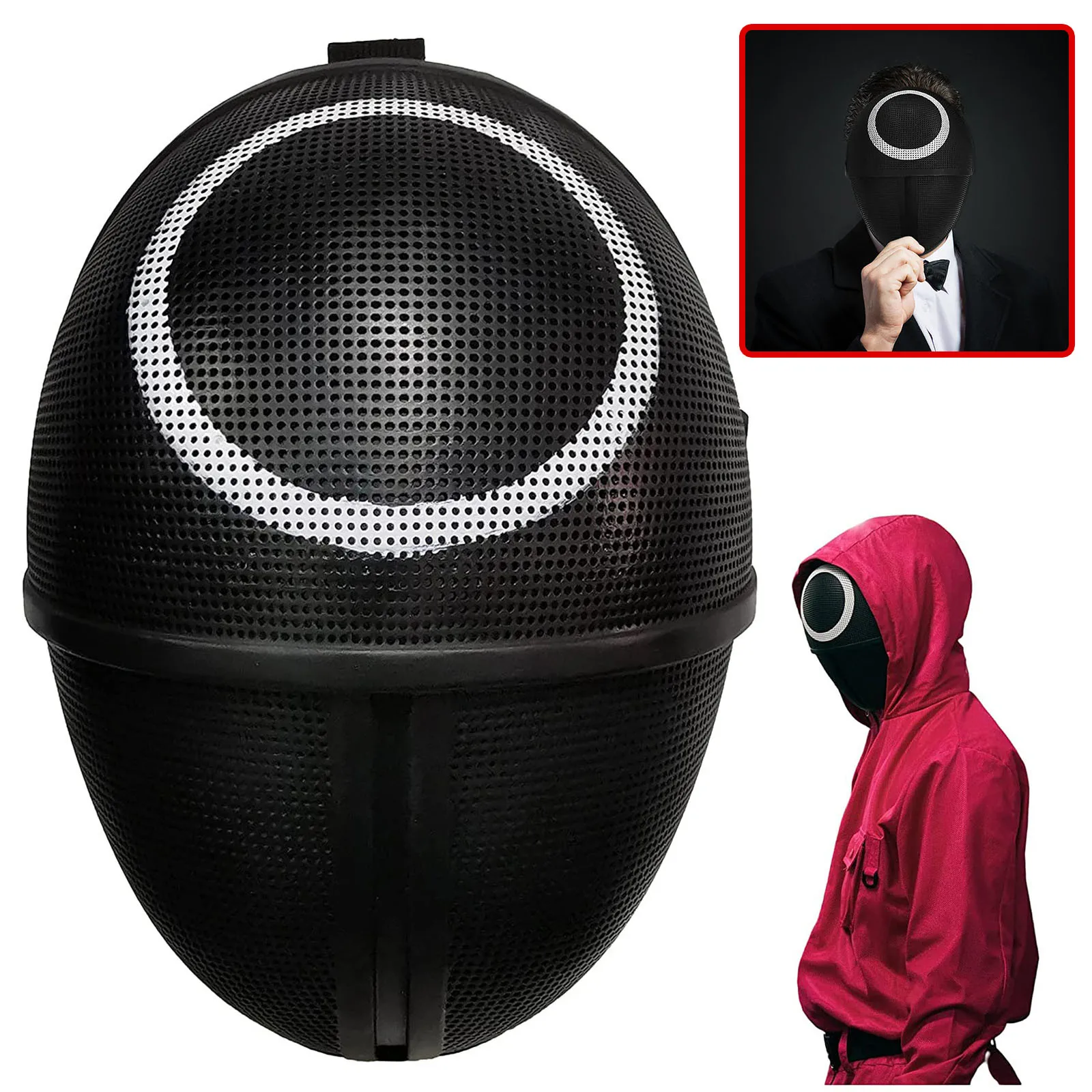 Черная игра кальмар треугольник Квадратный Круг Косплей пластиковая маска красный капюшон мужской головной убор босс унисекс маскарадный костюм реквизит для вечеринки