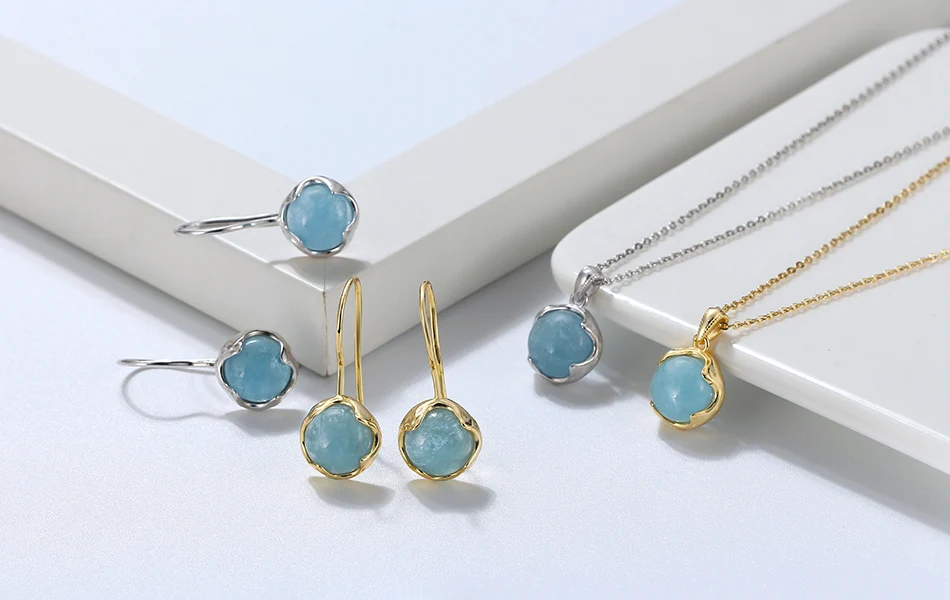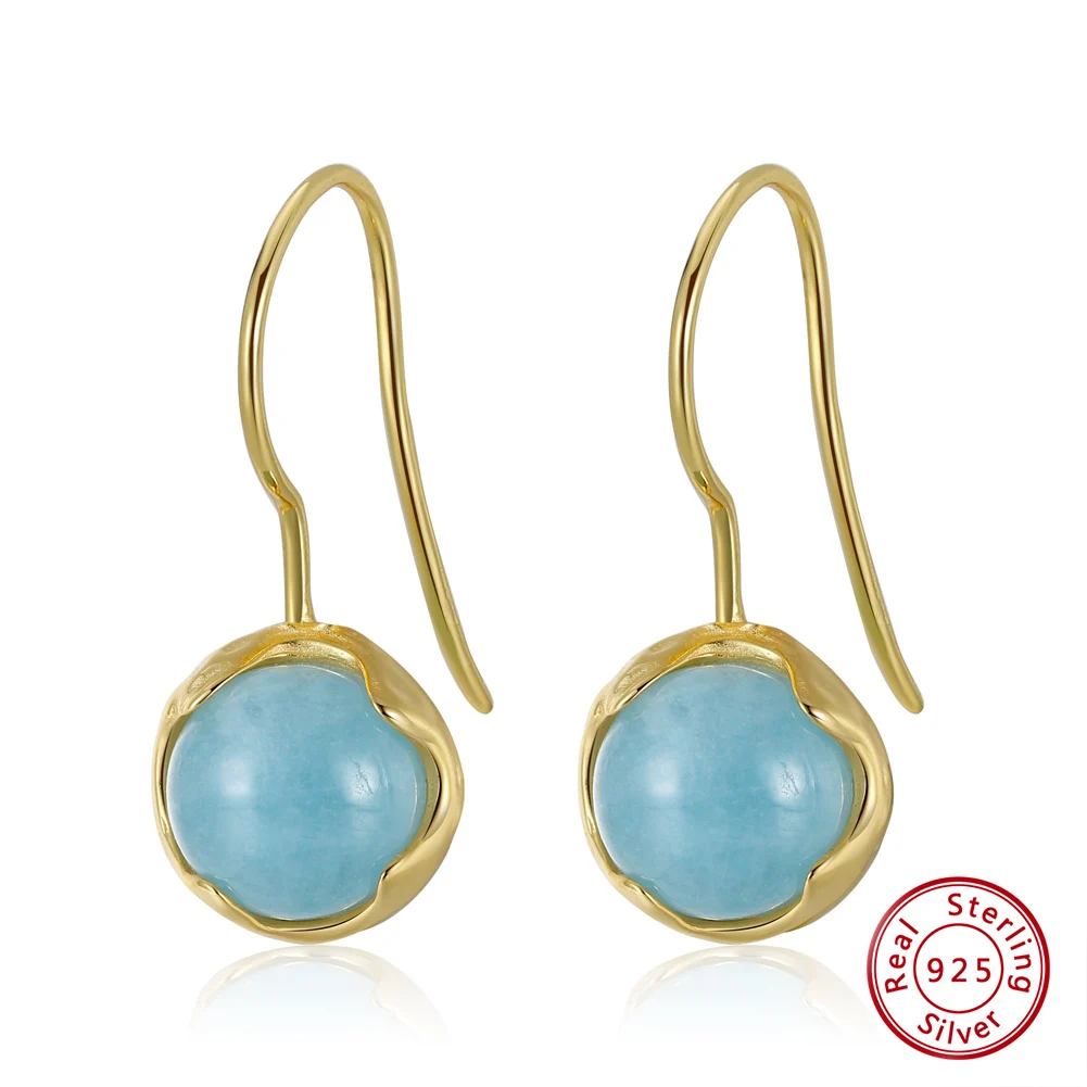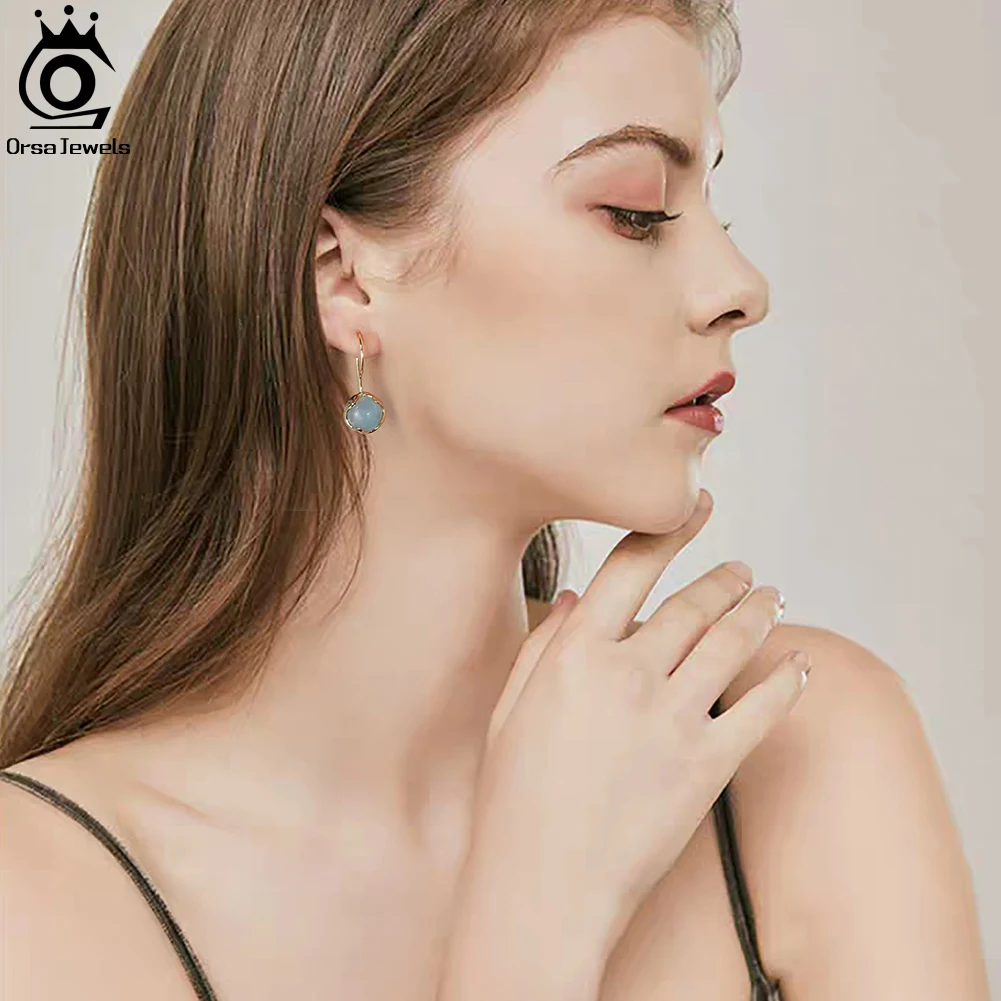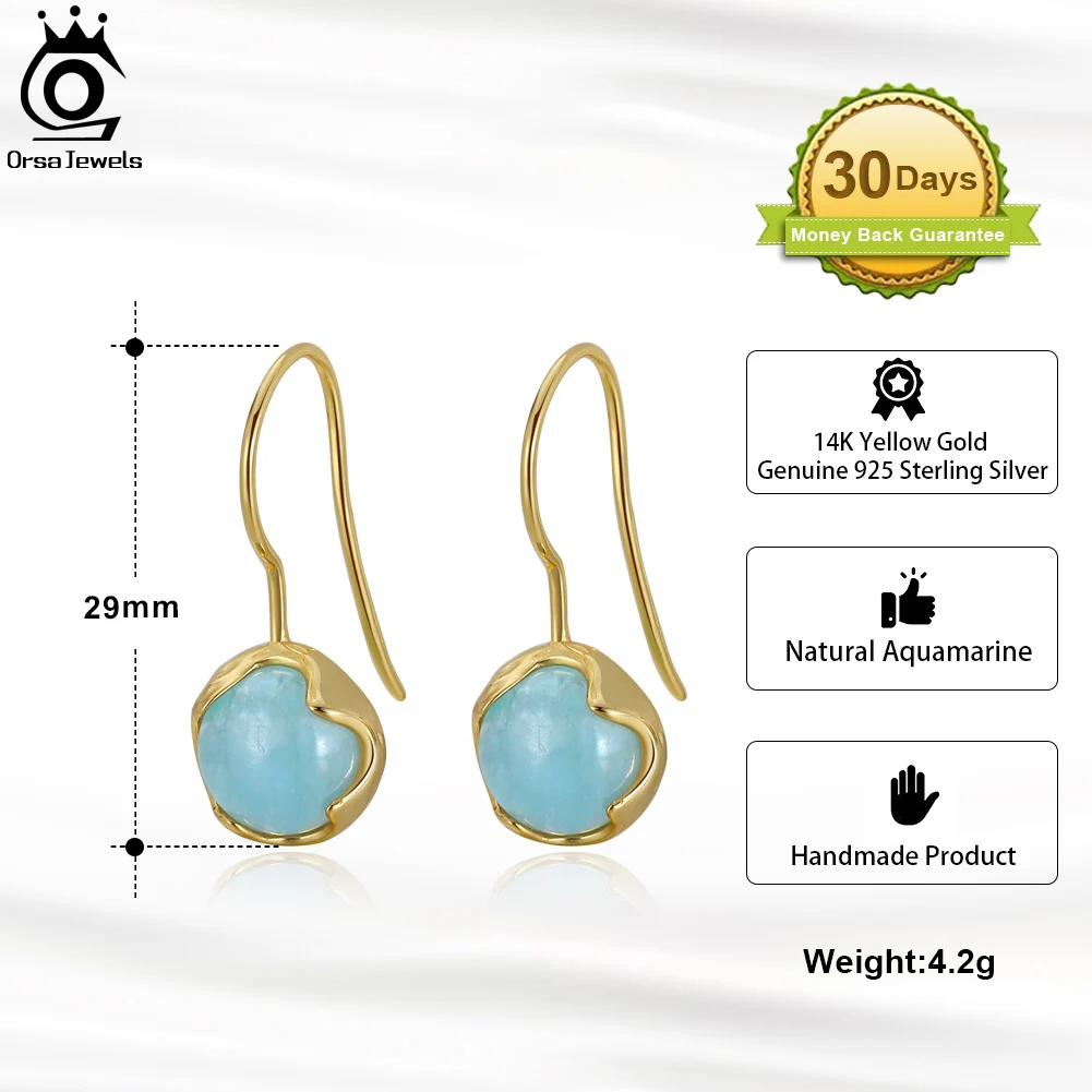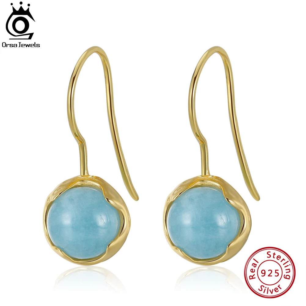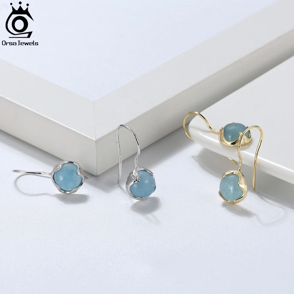 ORSA JEWELS 100% подлинный 10 мм Натуральный аквамарин ручной работы драгоценный камень Женские Висячие серьги серебро 925 пробы Свадебные украшения подарок GME06