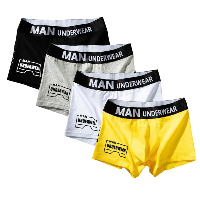 Трусы-боксеры мужские 4 шт.лот, хлопковые брендовые пикантные трусы с надписью и карманами, дышащие модные шорты