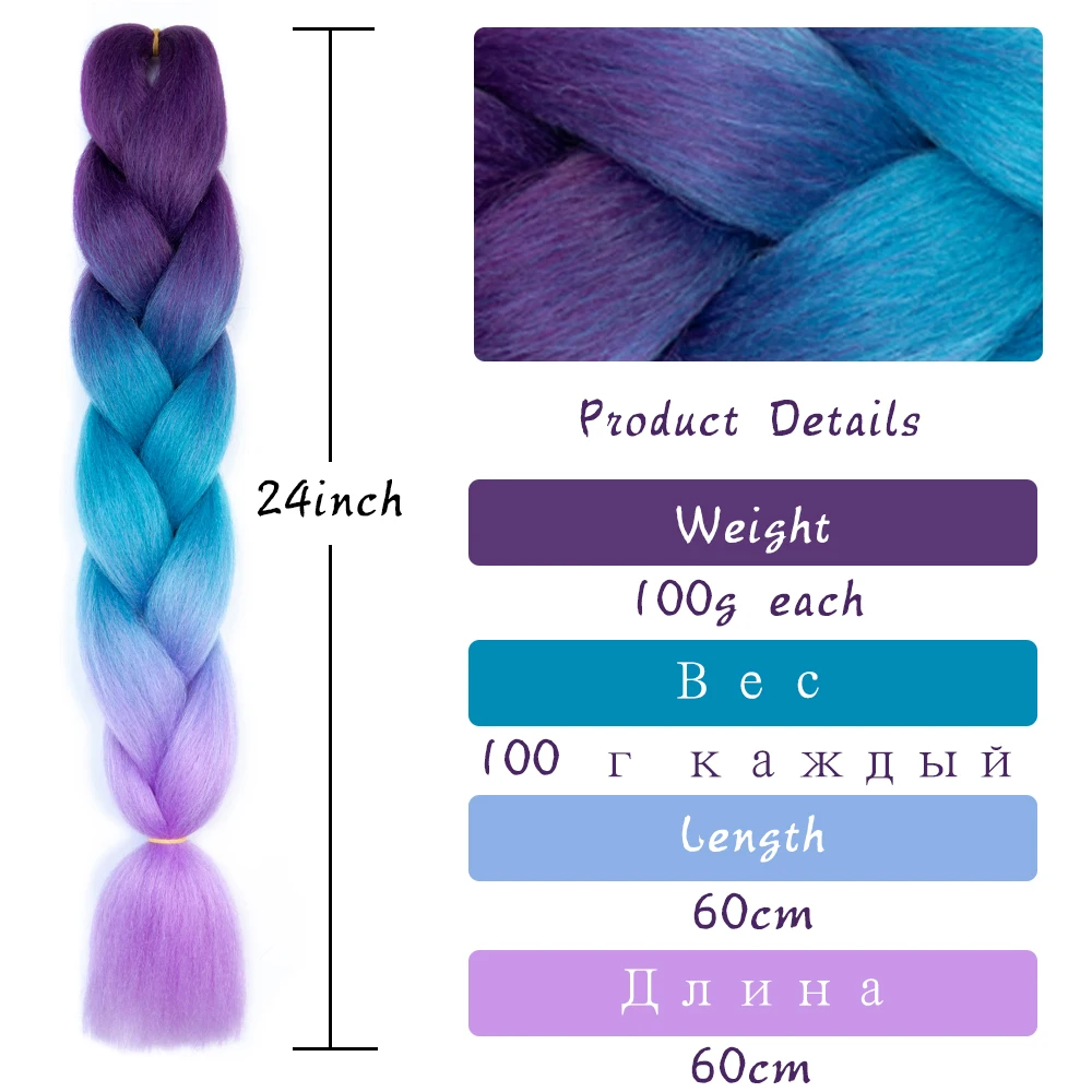Омбре Джамбо коробка косички волос Синтетические косички для плетен...