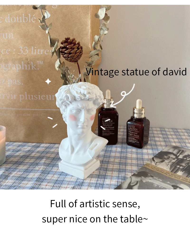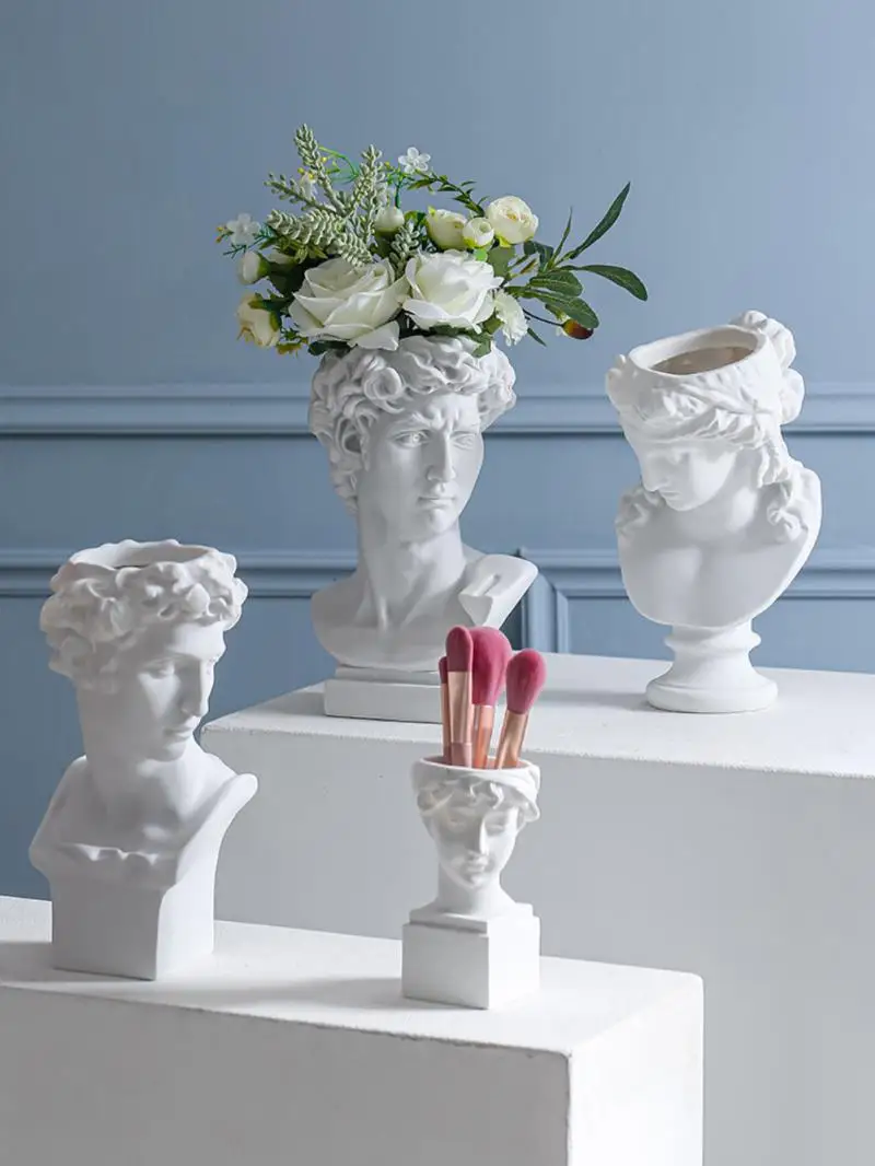 1. Креативность: Креативный держатель кистей для макияжа. Классические греческие чашечки для макияжа для кистей Michelangelo David Bust Statue. Вы можете положить ваши любимые румяна и помаду на этот красивый. Он является восхитительным украшением для вашего тщеславия.