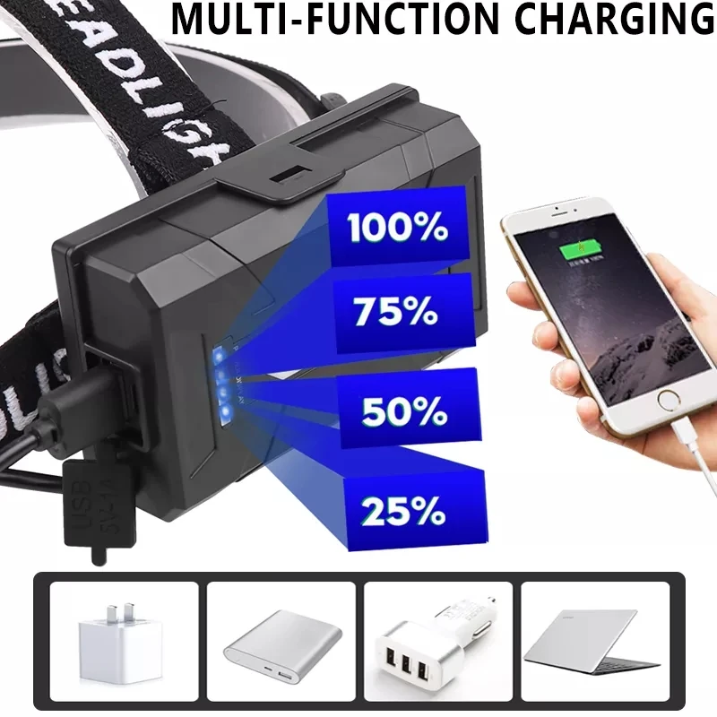 Мощный фонарь для рыбалки и светодиодный фонарь высокой мощности с датчиком фары фонарь для кемпинга 18650 Аккумулятор для охоты