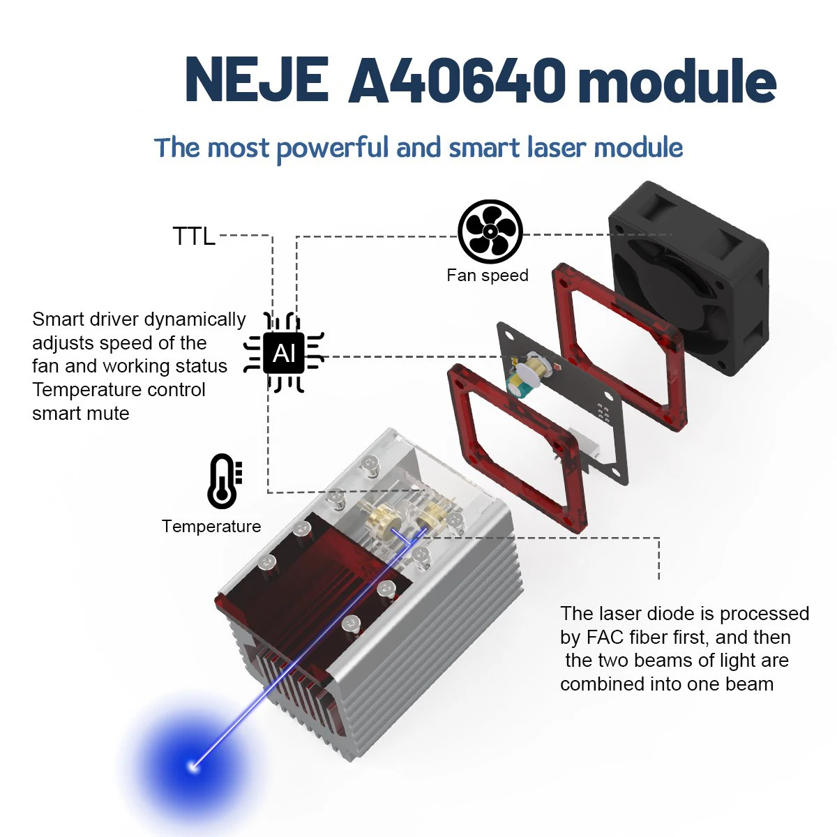 -【 420x255 мм подходит для рабочего стола шириной 600 мм, а левая сторона машины не ограничена размером материала. Подходит для обработки материалов большой площади. Под защитой датчика защиты от вибрации MEMS Процесс гравировки и резки может быть завершен одновременно. Модуль движения оси X составляет всего 120 г и управляется 40 мм толстым высокопроизводительным шаговым двигателем, что обеспечивает более быструю гравировку, чем козловая структура, 3400x5600 пикселей, точность гравировки: 0,075 мм точка шаг, 339 точек/дюйм. Для завершения установки требуется всего 4 винта.-【Advanced laser module】 лазерный луч формируется путем сочетания двух мощных лазерных диодов и использует технологию FAC. Минимальная точка фокусировки достигает 0,04x0,04 мм (модуль A40640). Поддержка усовершенствованного лазерного модуля NEJE, встроенный Быстрый Интеллектуальный привод, отзывы о температурах могут быть своевременными и разумно регулировать тепловыделение вентилятора. Безопасный и тихий в использовании.