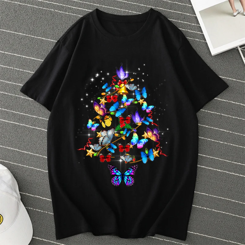 Футболка Мужскаяженская оверсайз, рисунок Рождественская бабочка, аниме футболка, уличная одежда в стиле Харадзюку, аниме рубашки для женщин и мужчин, одежда