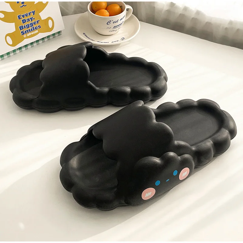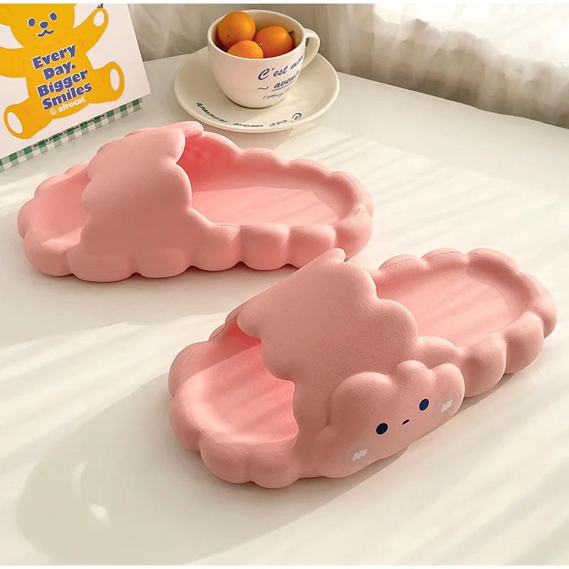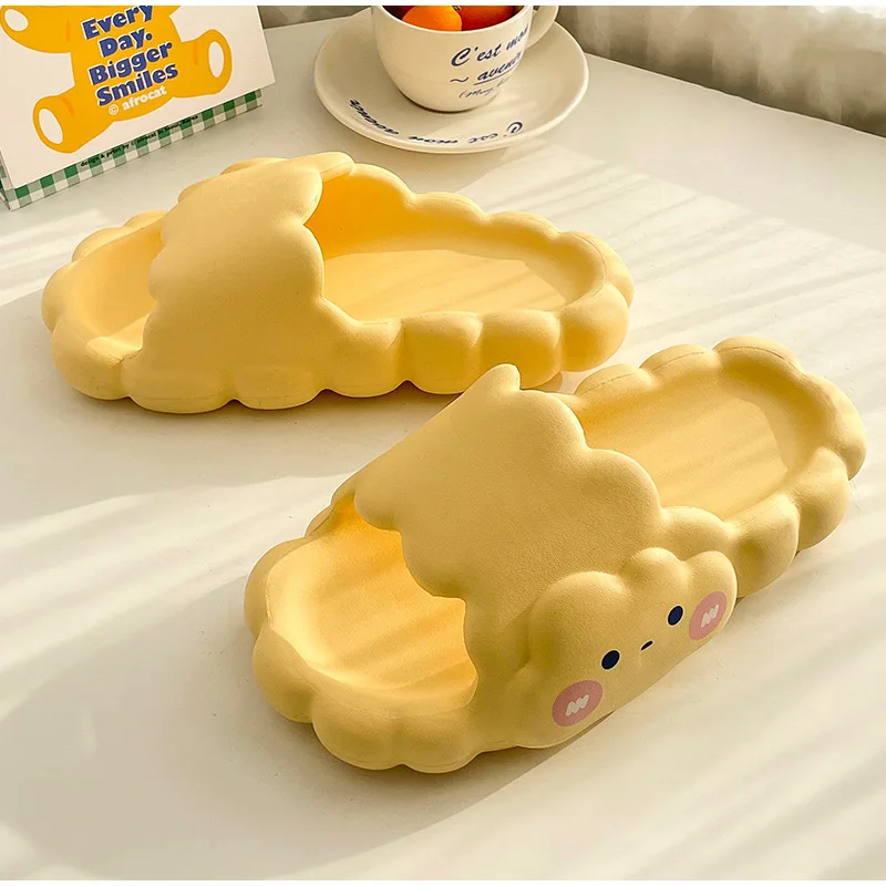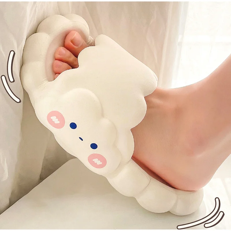 Сланцы женские домашние на толстой подошве, Нескользящие шлепанцы с мультяшным принтом, летняя удобная обувь для ванной комнаты