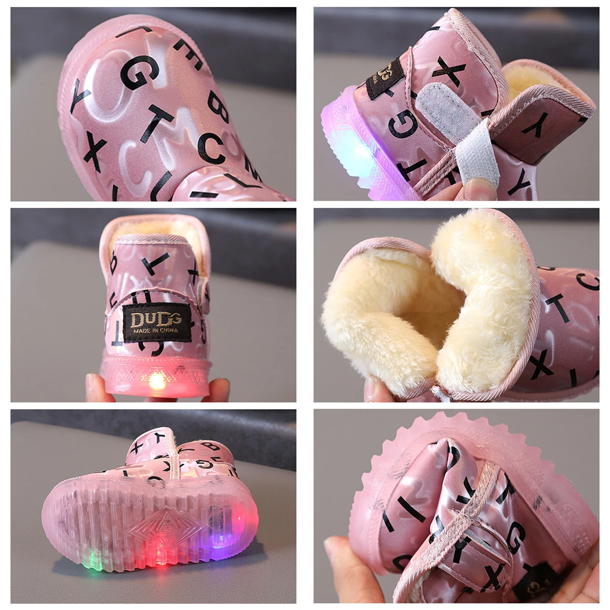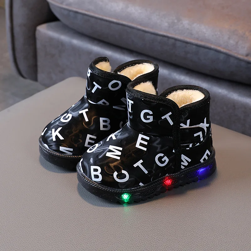 Детские светящиеся кроссовки, короткие теплые ботинки для начинающих ходить детей, размеры 21-30, для зимы