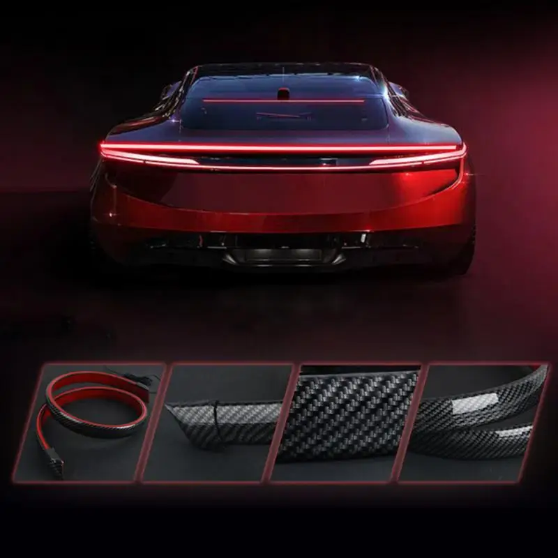 Универсальный светодиодный задний спойлер из углеродного волокна, 130 см, лампа для багажника автомобиля, многофункциональная лента для стоп-сигнала, 12 В, предупреждение
