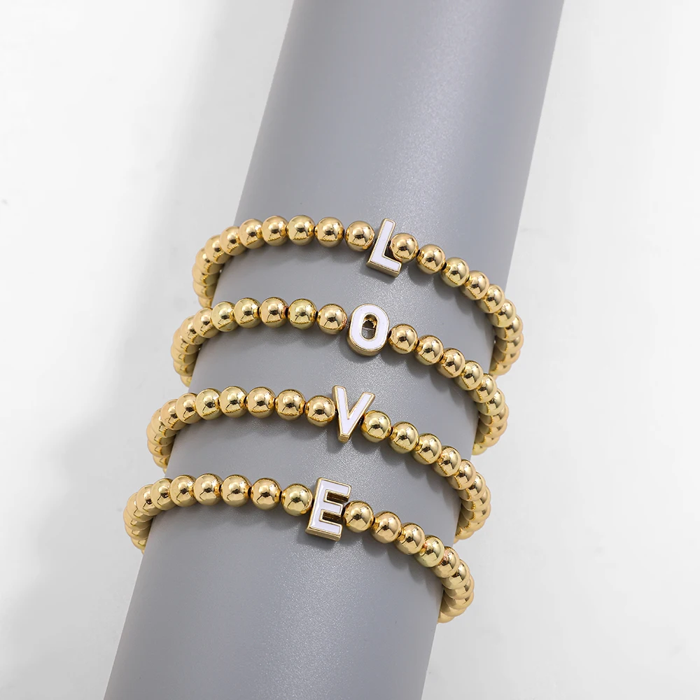 Браслет унисекс из буквы английского алфавита бусин, с золотыми бус...