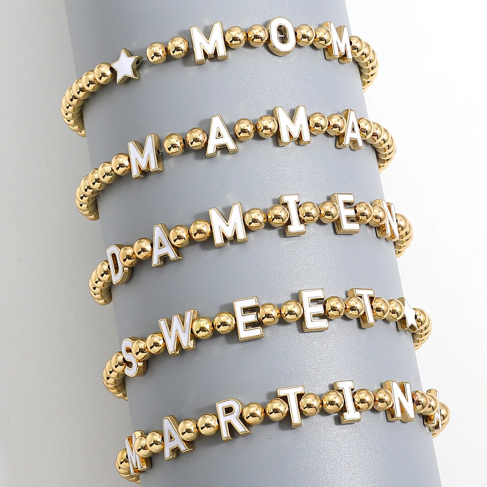 Персонализированный браслет с именем на заказ, белый браслет бусина...