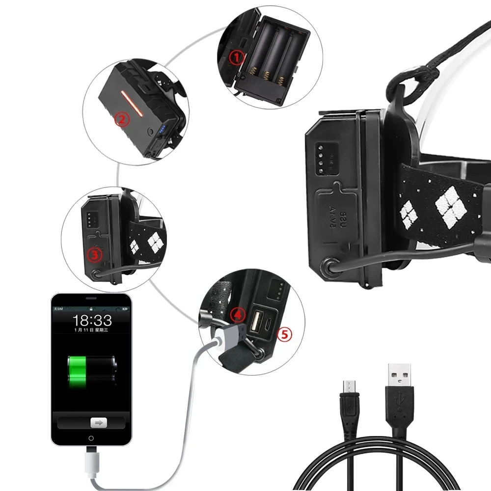 Мощный светодиодный налобный фонарь XHP160 18650 лм, налобный фонарь с зарядкой от USB, налобный фонарь Xhp90, водонепроницаемый масштабируемый светильник онарь для рыбалки с батареей