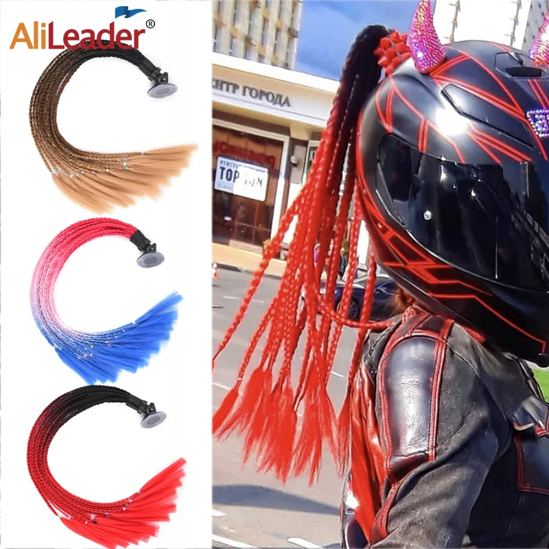 Недорогие косички для шлема оплетка для конского хвоста 24-дюймовый мотоциклетный шлем косички оплетка для конского хвоста с присоской Женский шлем косичка для хвоста