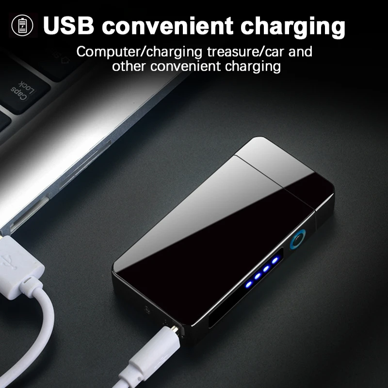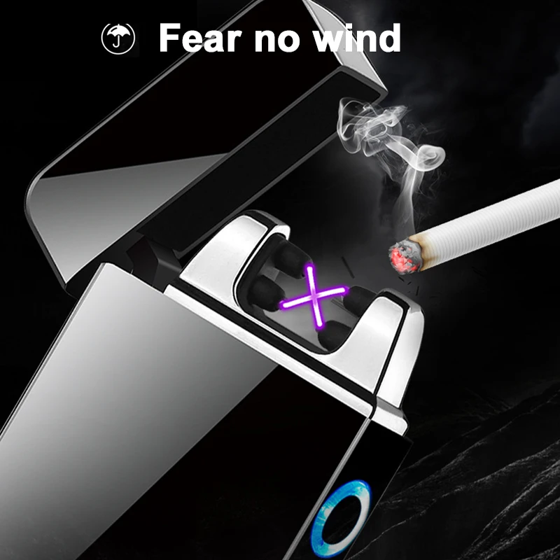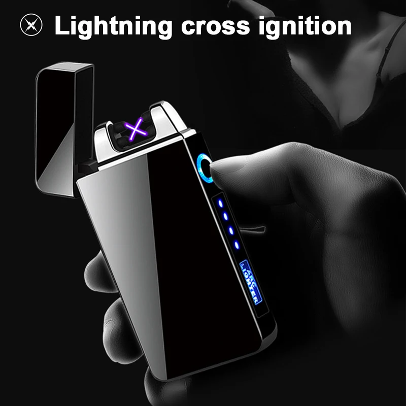 Ветрозащитная зажигалка с двойной дугой, плазменная перезаряжаемая USB-зажигалка, электрические металлические зажигалки светодиодный ным дисплеем мощности, мужские гаджеты