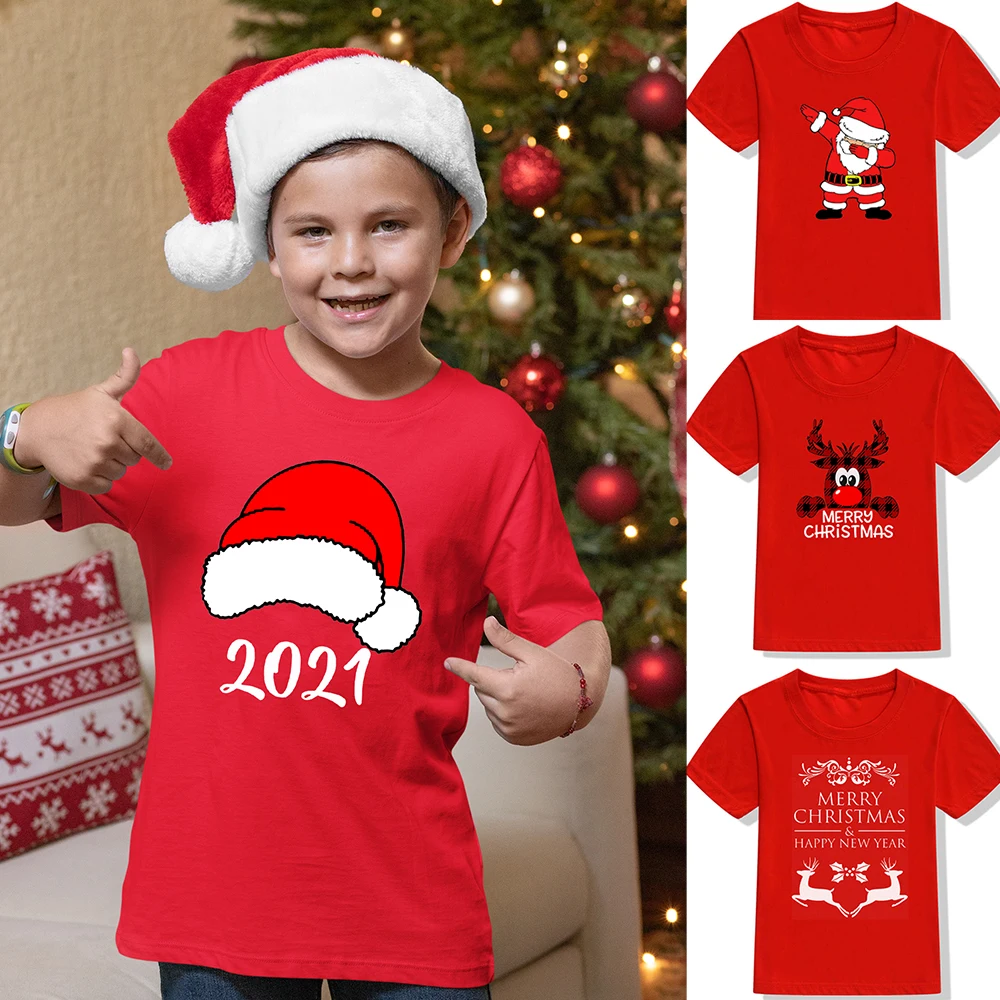 2021, детская красная футболка с коротким рукавом на Рождество, повседневные футболки для мальчиков и девочек, детские Графические футболки для малышей, Рождественская одежда