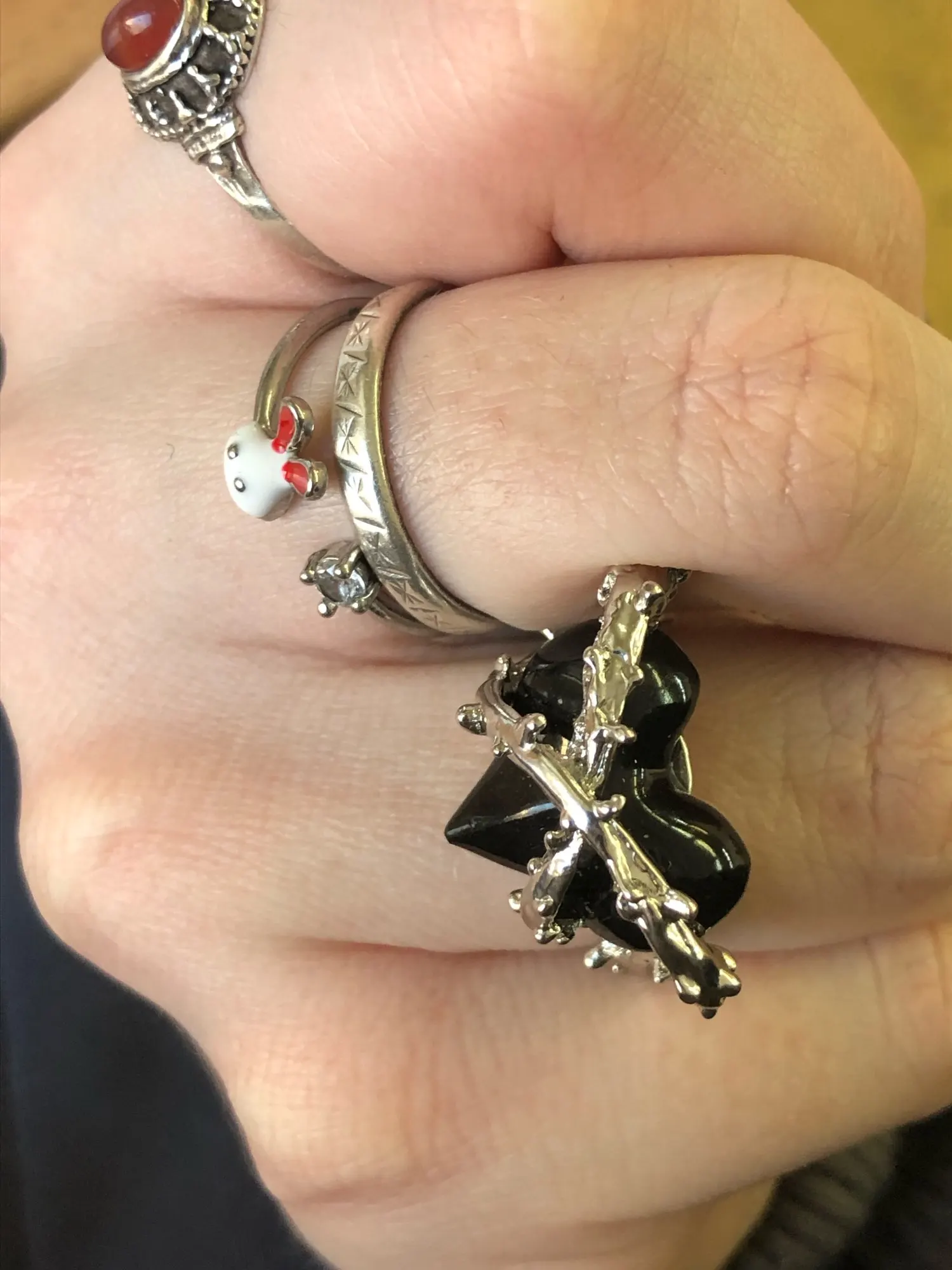 Кольцо женское винтажное открытое в готическом стиле с сердечками и шипами
