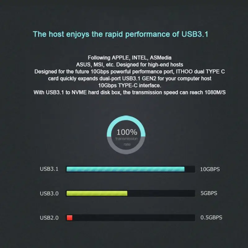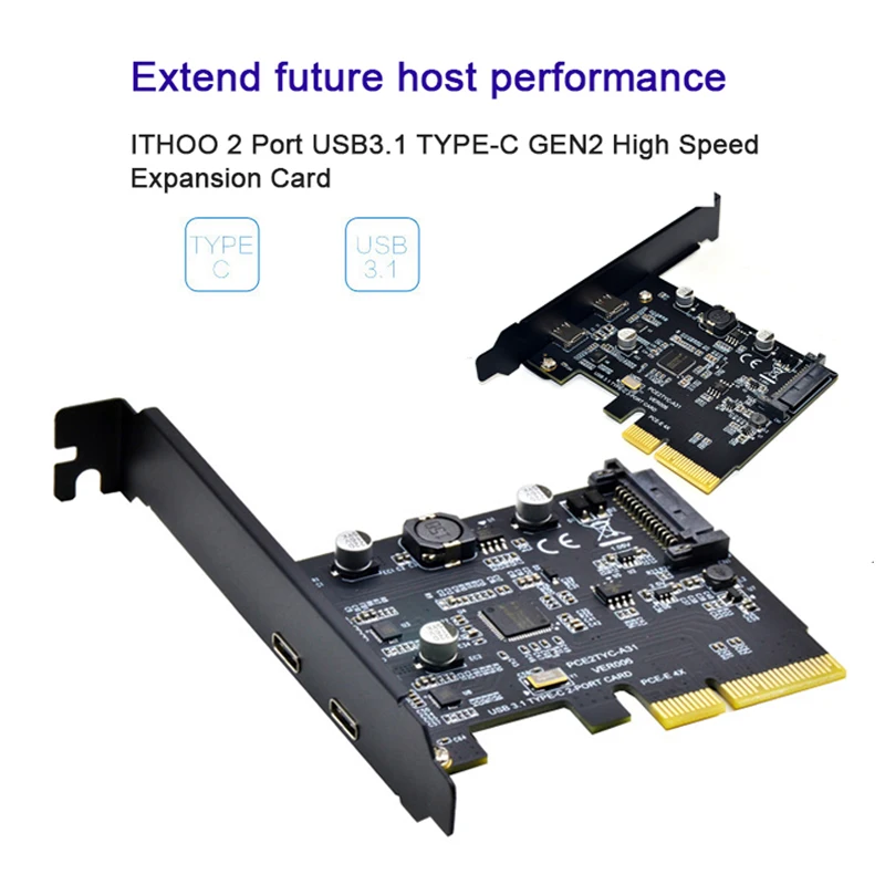 Разработанная для будущего мощного порта производительности 10 Гбит/с, карта ITHOO dual TYPE-C быстро расширяет двойной порт USB3.1 GEN2 для вашего компьютера