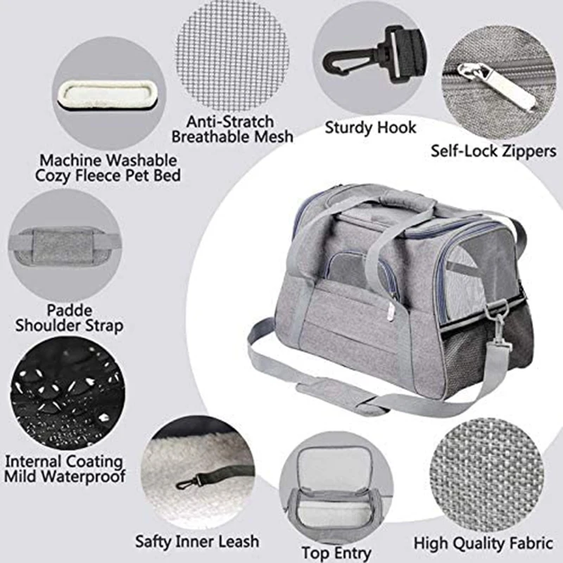 Особенности:Дышащее и видимое окноВерхняя и боковая оконная сетка обеспечивает максимальную видимость для вашего питомца и обеспечивает хорошую вентиляцию, которая может оптимизировать поток воздуха.Качественный материалИзготовлен из высококачественных материалов, которые безопасны, нетоксичны, долговечны, водонепроницаемы и используется для длительного использования.Тонкая работаРюкзак для домашних животных использует жесткий процесс прошивки, чтобы сделать каждый компонент сильным и прочным, не выходя в автономном режиме или не повреждая.Удобная флисовая кроватьНижняя флисовая подкладка обеспечивает удобное место для отдыха вашего питомца и предотвращает провисание мешка и может быть перемещена для легкой очистки.Мягкий плечевой ременьРасширенные мягкие плечевые ремни уменьшают давление на плечи и позволяют чувствовать себя более комфортно.ПрименениеОн идеально подходит для большинства кошек и собак в пределах 5 кг, что обеспечивает больше удобства для путешествий на открытом воздухе.