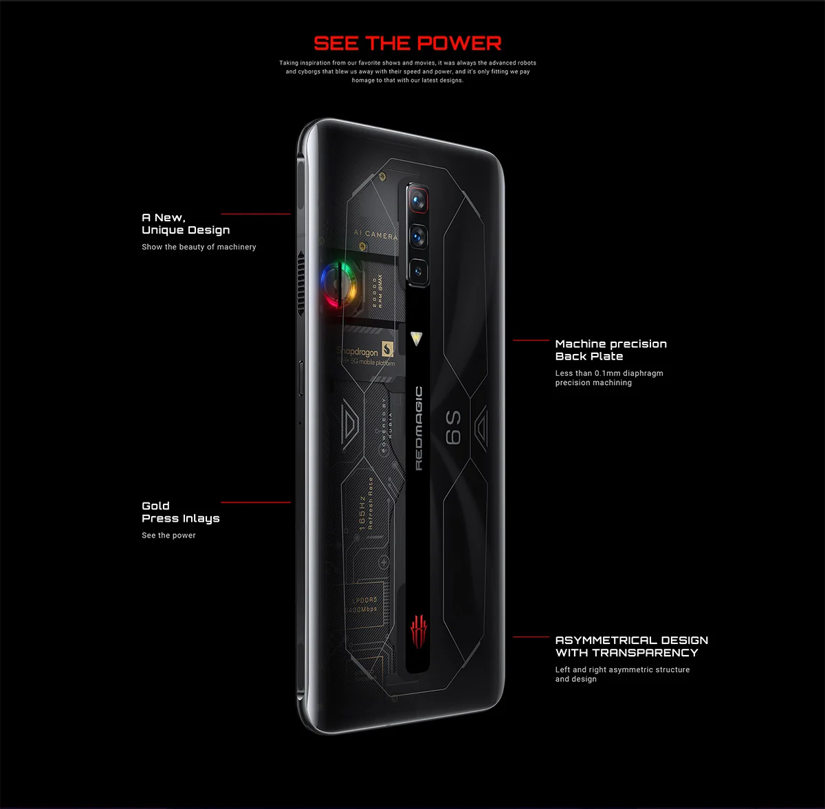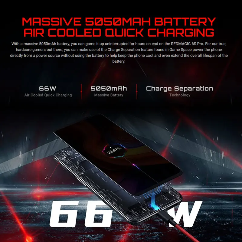 Игровой мобильный телефон Глобальная версия Nubia RedMagic 6S Pro, 12 Гб, 128 ГБ, Восьмиядерный процессор Snapdragon 888 +, AMOLED экран 6,8 дюйма, камера 64 мп, сотовый телефон