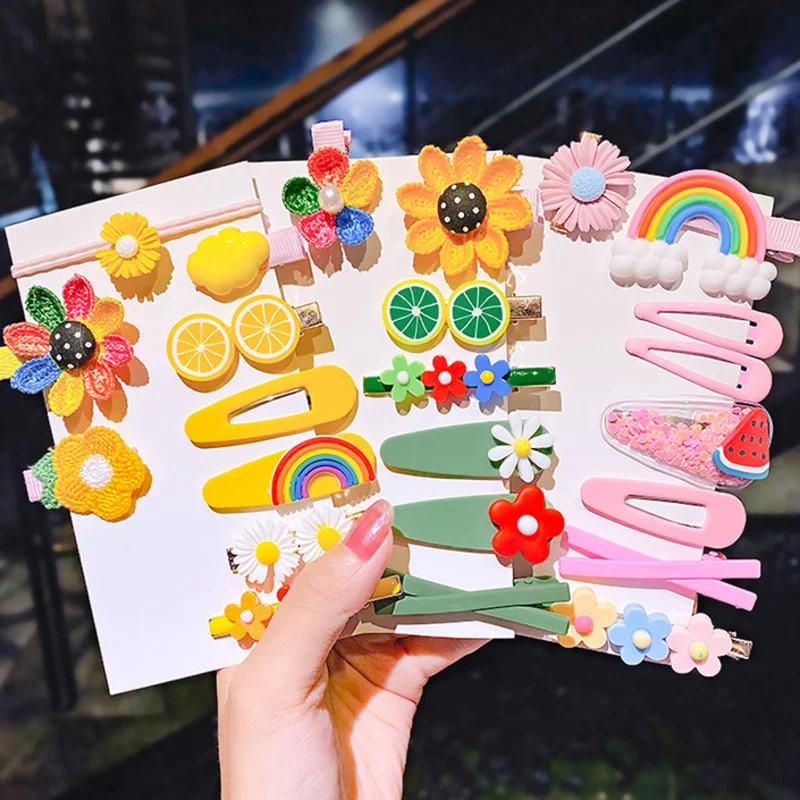 Заколки для волос с милыми мультяшными фруктами и цветами, 1 комплект