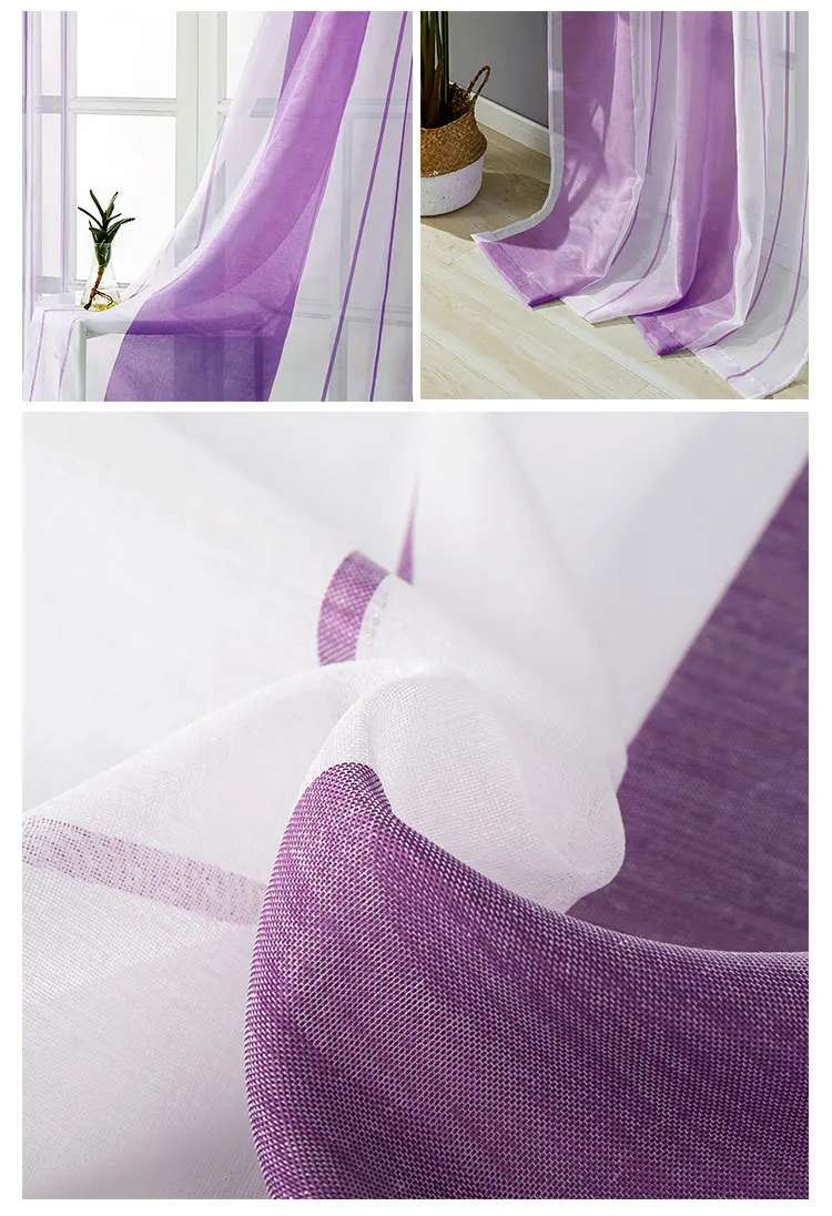 Прозрачные льняные шторы с розовым градиентом, занавески для гостин...