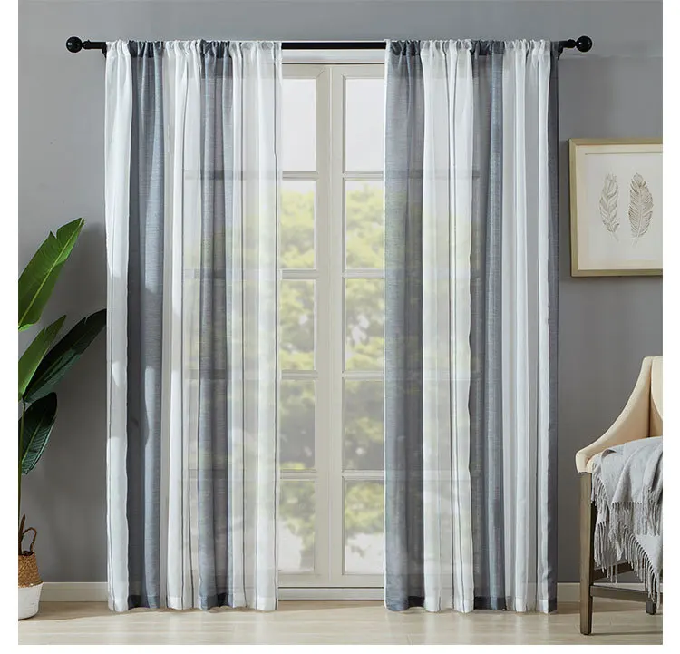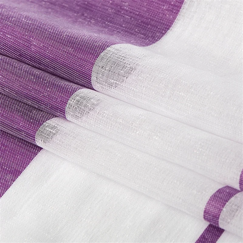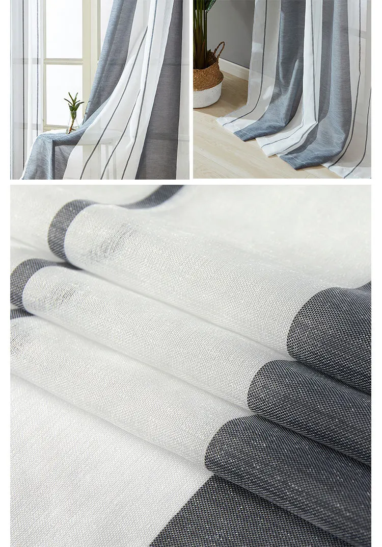 Полупрозрачные занавески из искусственного льна в полоску, для гост...