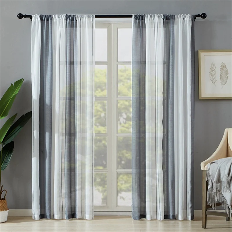 Черно-белые тюлевые шторы с градиентом для гостиной, спальни, оконн...