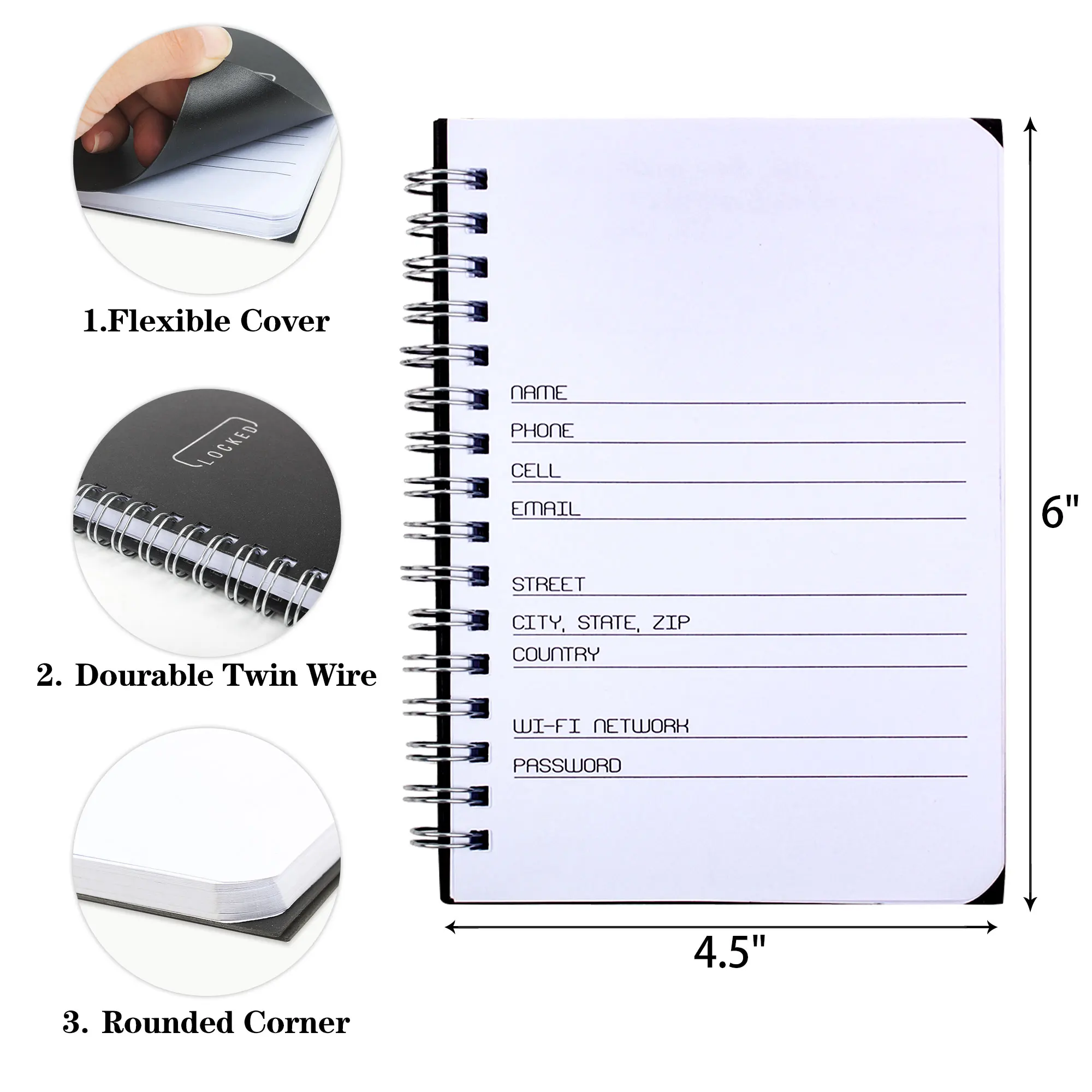 Блокнот с паролем, Интернет-адресом, блокнот, спиральная мягкая обложка, журнал-органайзер, блокнот-органайзер с сайтом, имя пользователя, электронная почта, контакты
