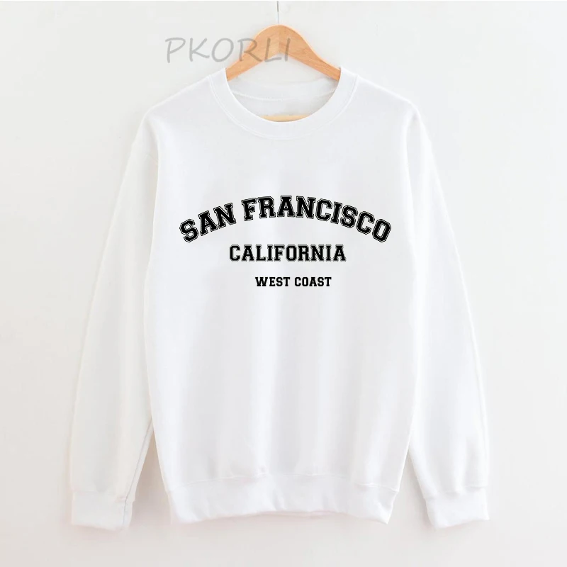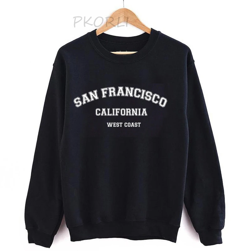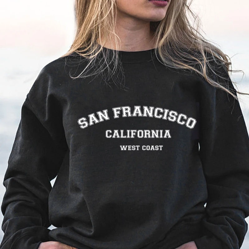 Свитшот с круглым вырезом в стиле Сан-Франциско, пуловер Калифорния, толстовка с длинным рукавом, уличная одежда в стиле Харадзюку, женская зимняя одежда