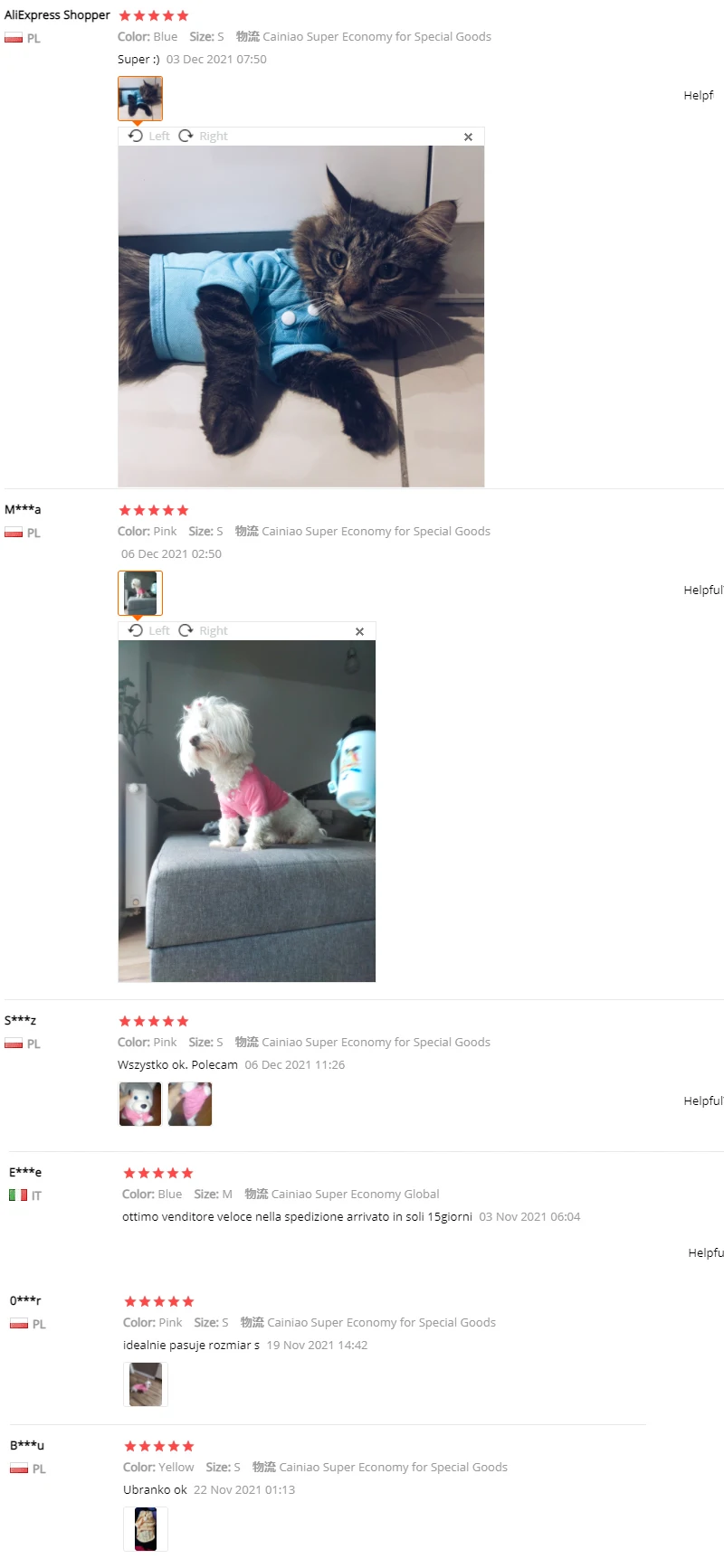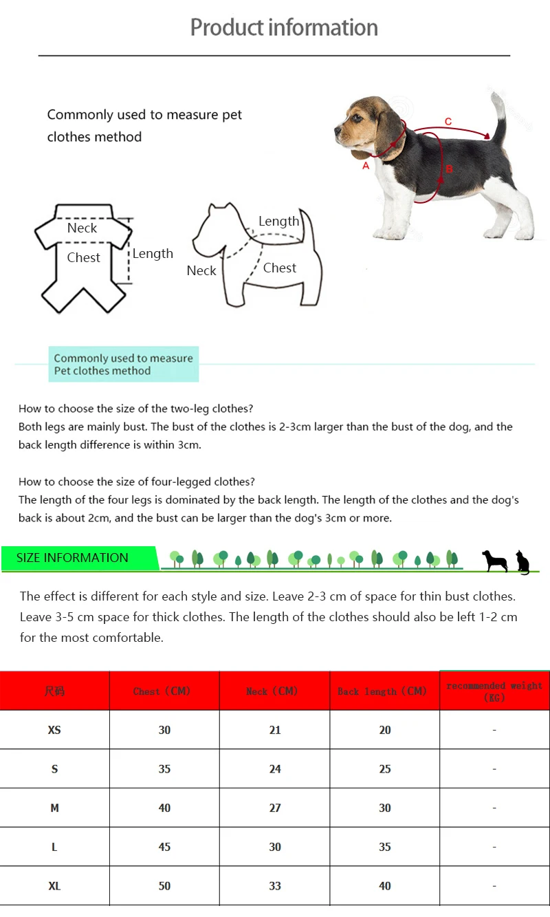 Размер L, длина спины: 35 см, обхват груди: 45 см, обхват воротника: 30 см