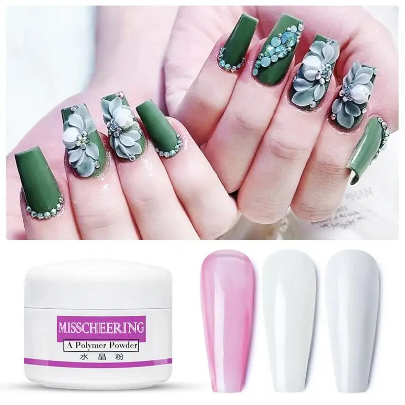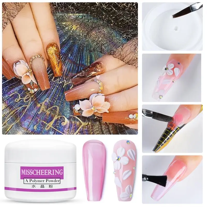 Прозрачный акриловый порошок подходит для удлинения и приклеивания стразы.