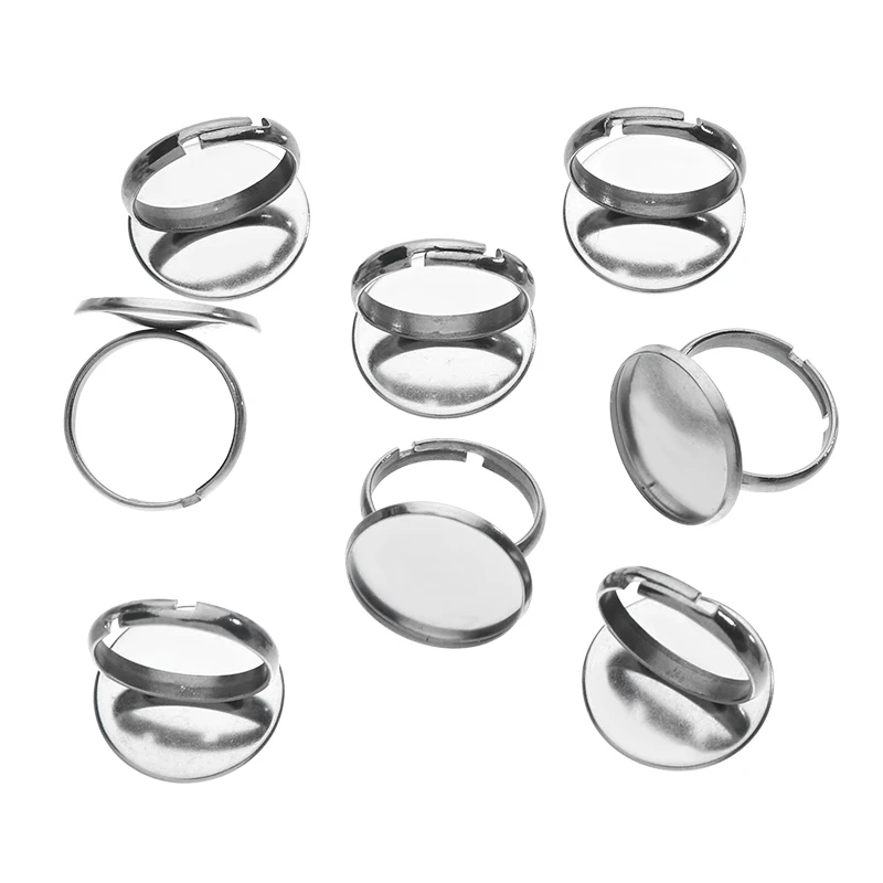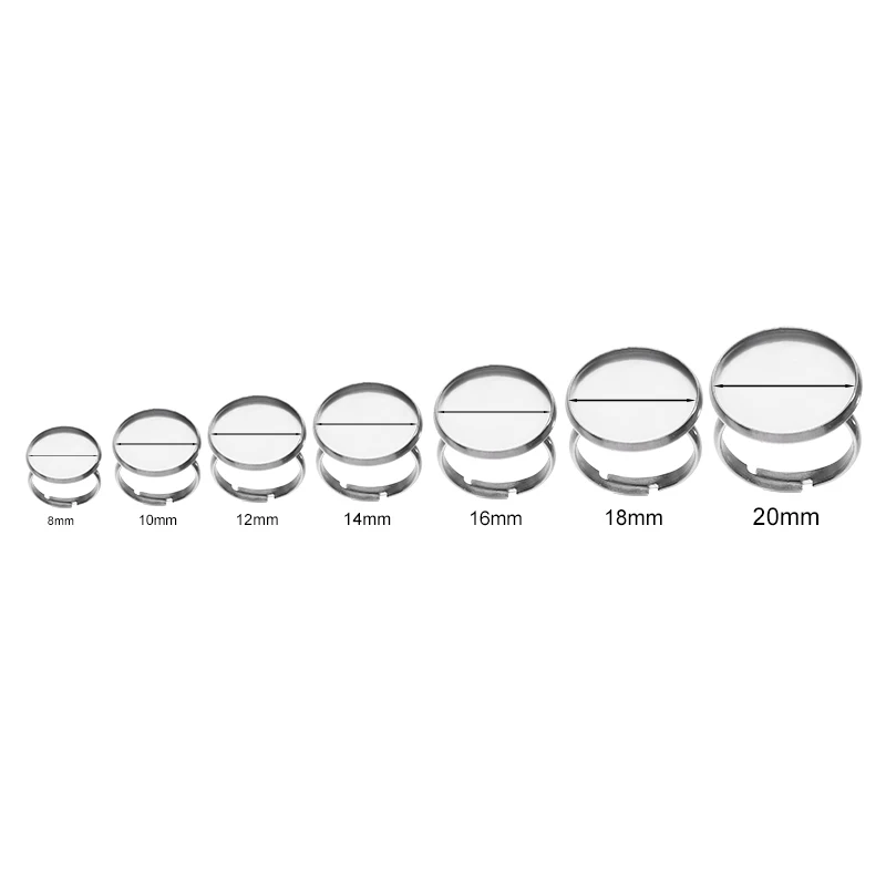 20 штук Нержавеющая сталь Регулируемый 8/10/14/16/18/20 мм кольцо кабошоны базовые для бижутерии, материал для рукоделия подходит круглый камень прокладки дополнения