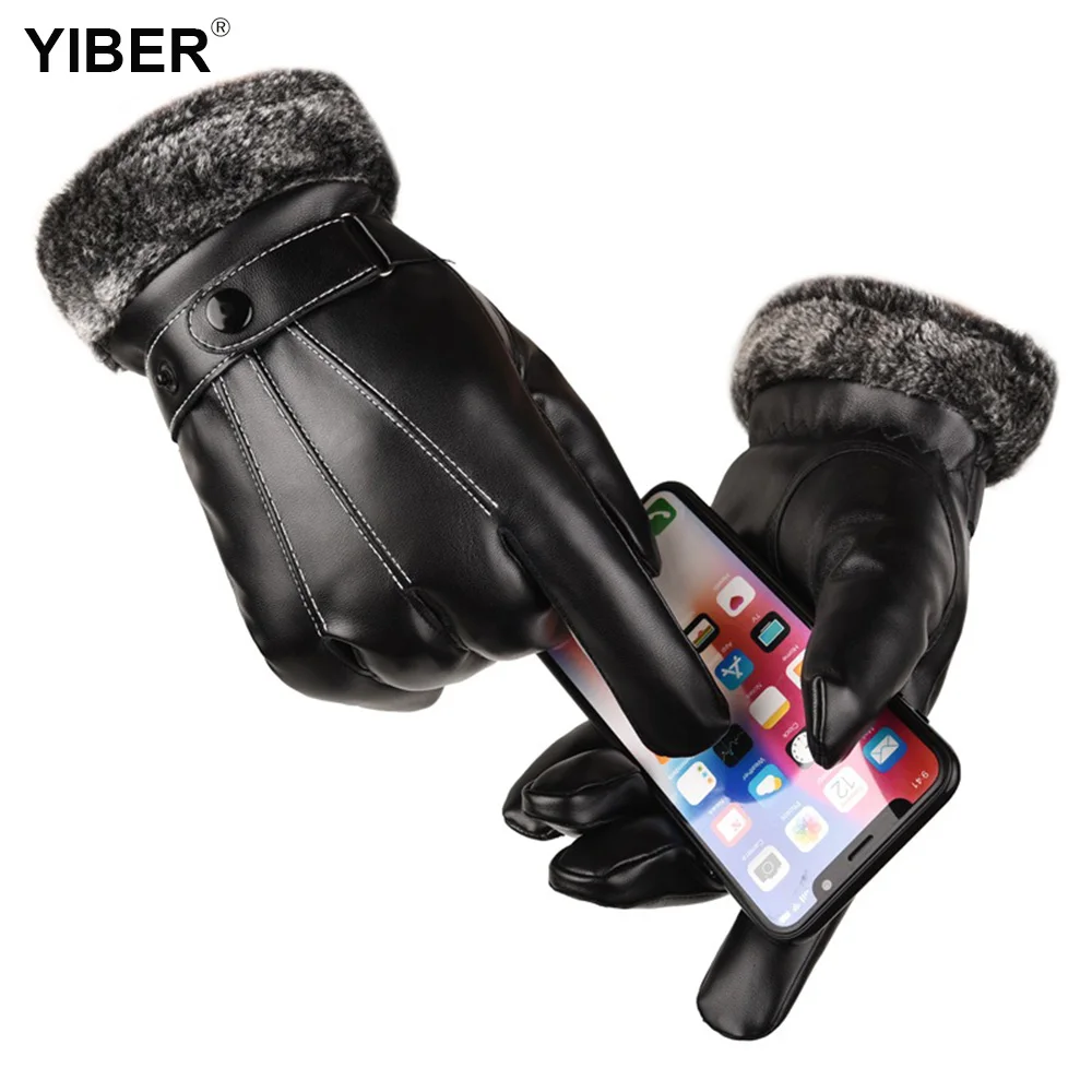 Зимние теплые кожаные перчатки, зимние перчатки для мужчин, для вождения, мотоцикла, сноуборда, спорта на открытом воздухе, велосипедные перчатки для сенсорного экрана, перчатки