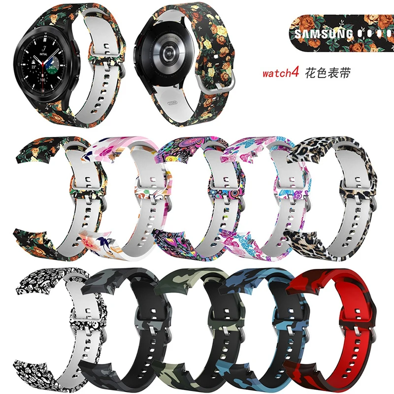 Ремешок силиконовый для Galaxy Watch 4, модный браслет с принтом дл...