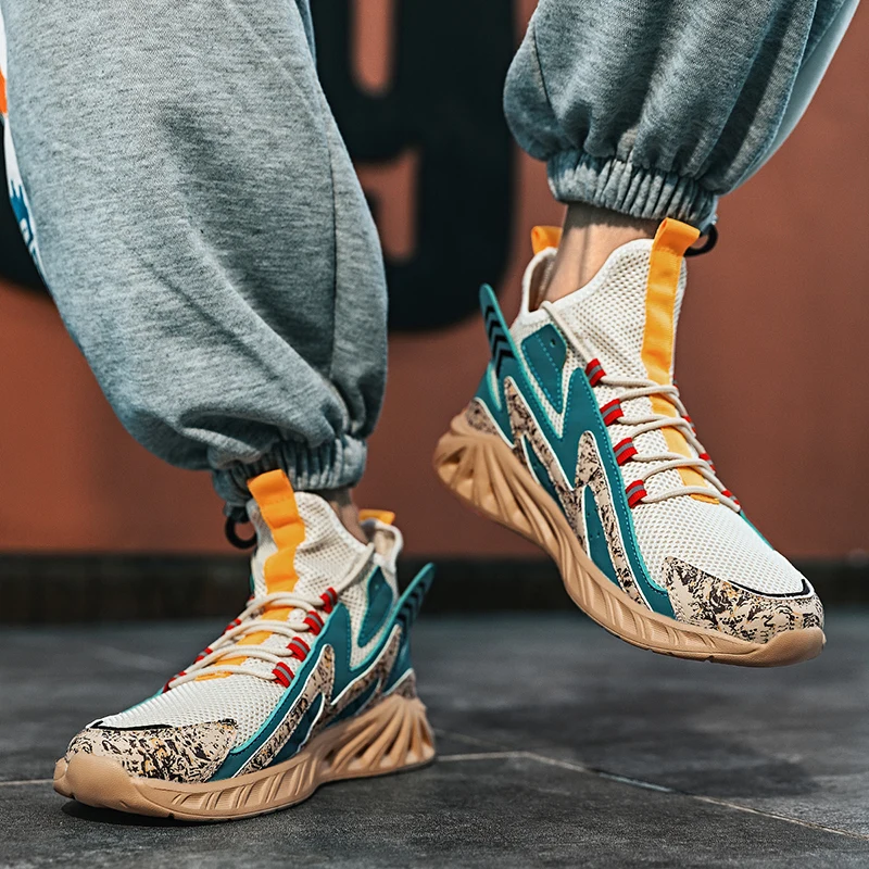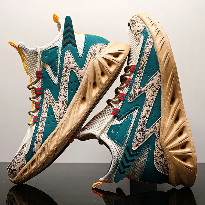 Роскошные мужские кроссовки для бега в уличном стиле, легкие дышащие Сетчатые эластичные уличные спортивные модные повседневные туфли, обувь для бега