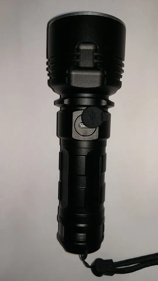 Фонарик пришёл быстро. Выглядит хорошо. Полностью алюминиевый. С одной стороны кнопка, с противоположной - разъём зарядки. Аккумулятор в комплект не входит. Кстати, так и не понятно, какой аккумулятор нужно установить. В описании по этому поводу ничего не написано. Провода для зарядки тоже нет в комплекте. Как светит пока не знаю. Но судя по размеру светодиода, на звание "самый мощный" он явно не тянет.