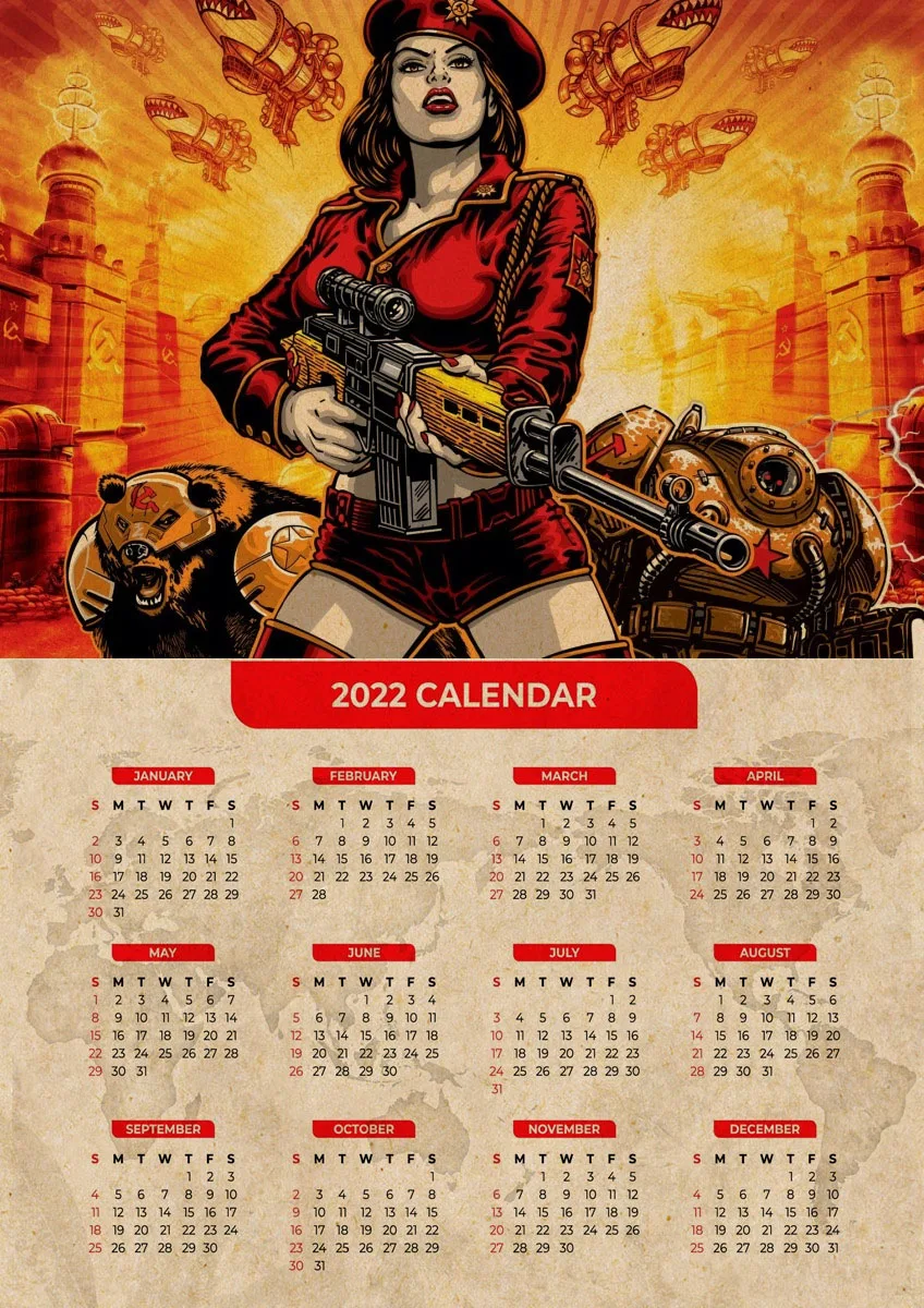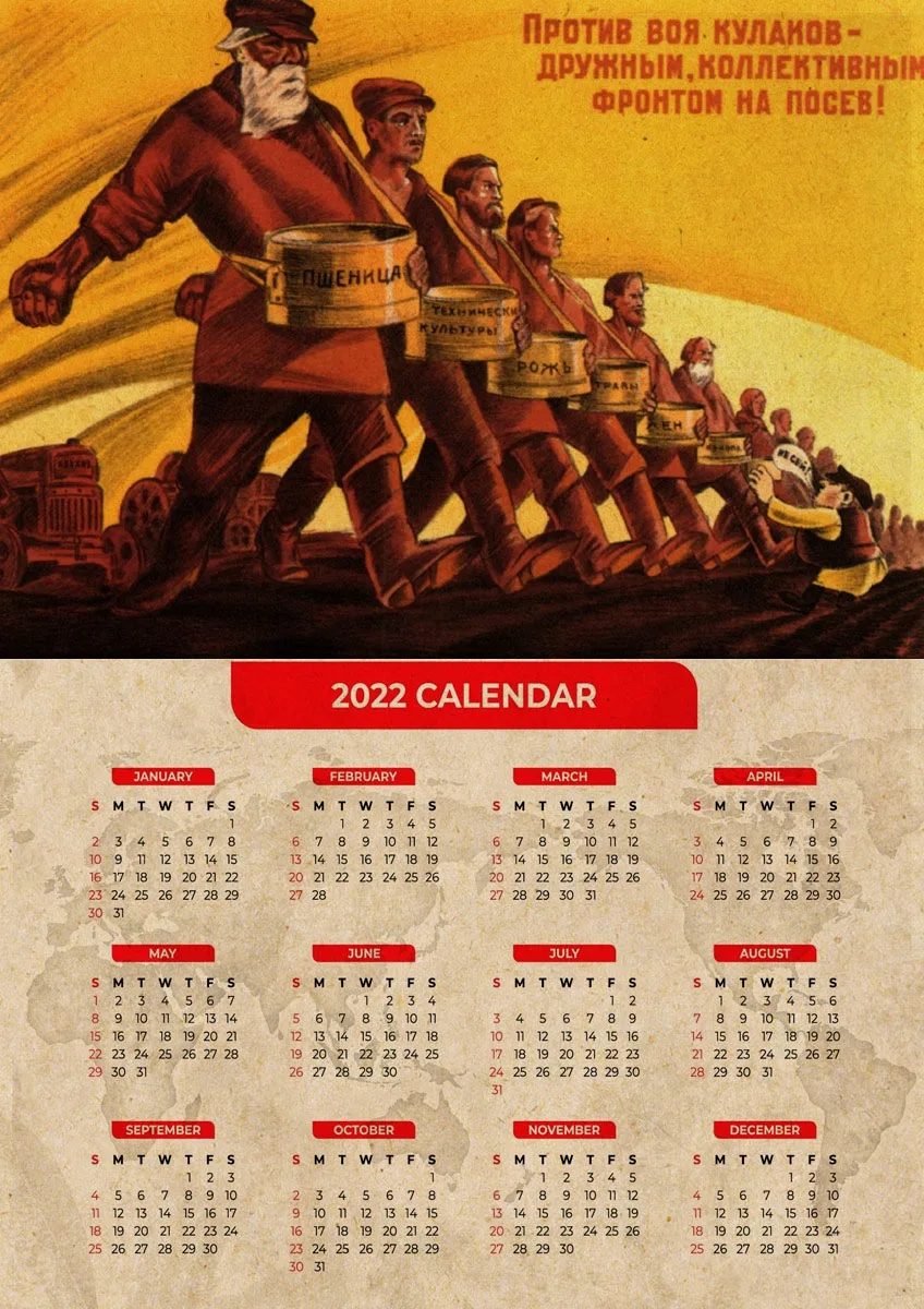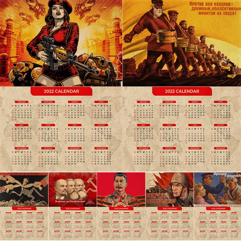 2022 календарь Советский Союз CCCP советская армия коммунистические вечерние винтажные крафт-бумажные плакаты настенные наклейки для домашнего искусства декоративные