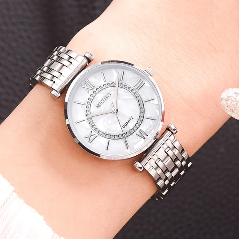 Женские наручные часы, кварцевые часы из нержавеющей стали с серебр...