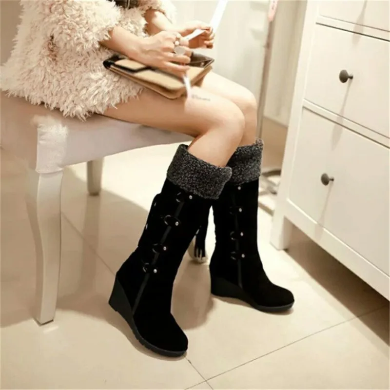 2022 зимние сапоги, женская зимняя обувь, теплая хлопковая обувь, зимние сапоги до колена, женские сапоги на танкетке и каблуке 7 см, приблизительно 42