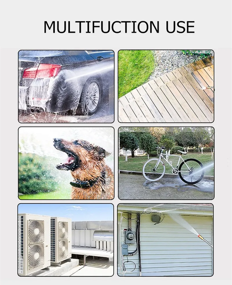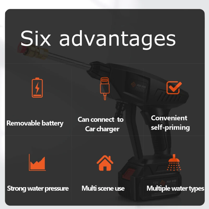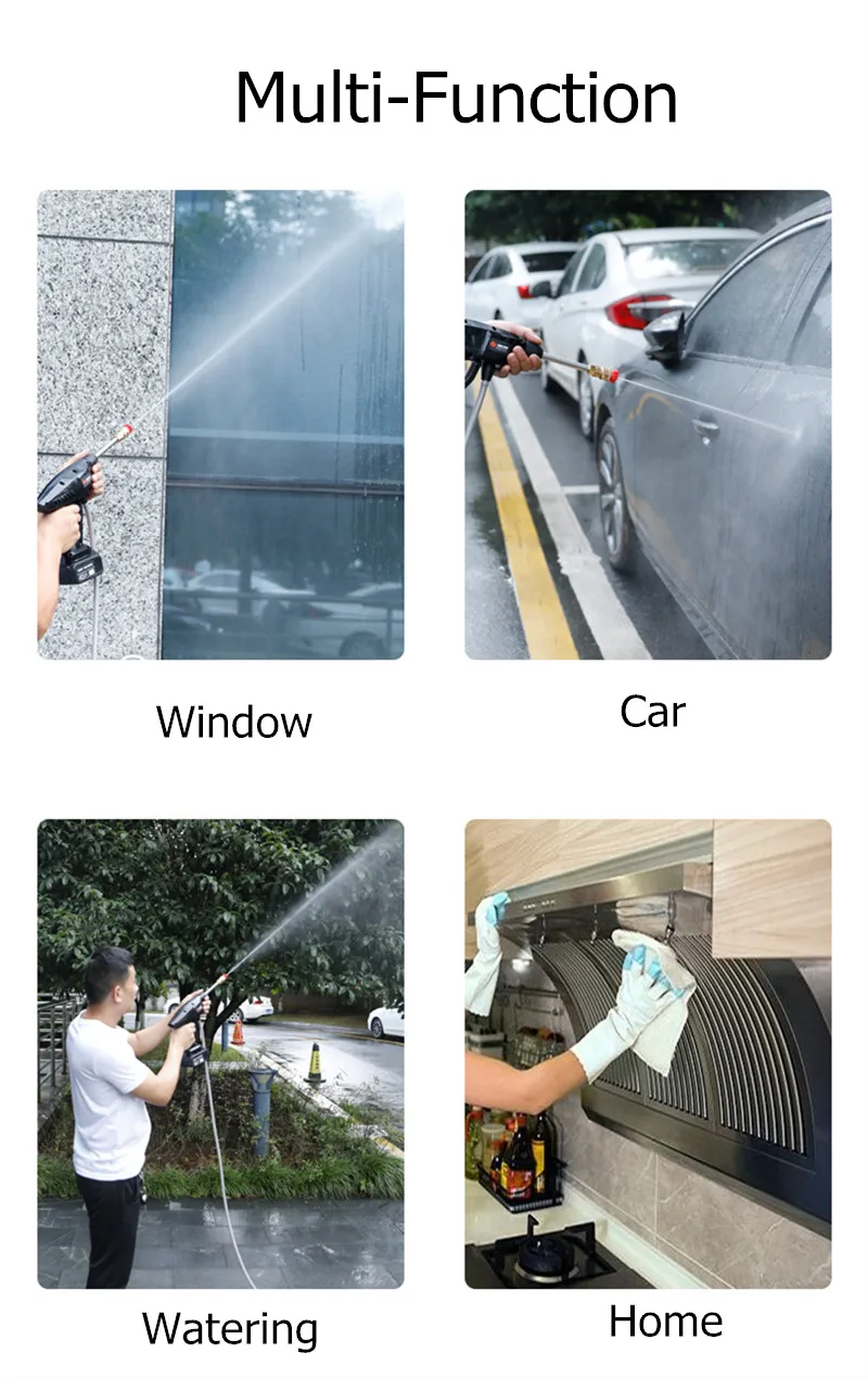 1. Беспроводная Автомобильная стиральная машина не ограничена временем.2. 5 серий большого двигателя, большой выход воды, сильное давление, низкий уровень шума.3. Мощный Медный двигатель 300 Вт, двигатель из чистой меди, непрерывное техническое обслуживание.4. Он не подвержен внешнему водозабору, прост в использовании, притягивает взгляд и поглощает воду.5. Можно переключать режим воды.6. Электрическая очистка высокого давления, очень подходит для мытья автомобиля, полива сада, орошения в сельском хозяйстве и ежедневной уборки.7. Простота установки и простота в использовании.
