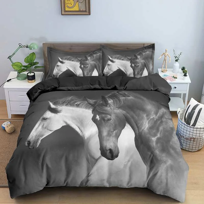 Комплект постельного белья с пододеяльником и 3D-принтом лошади
