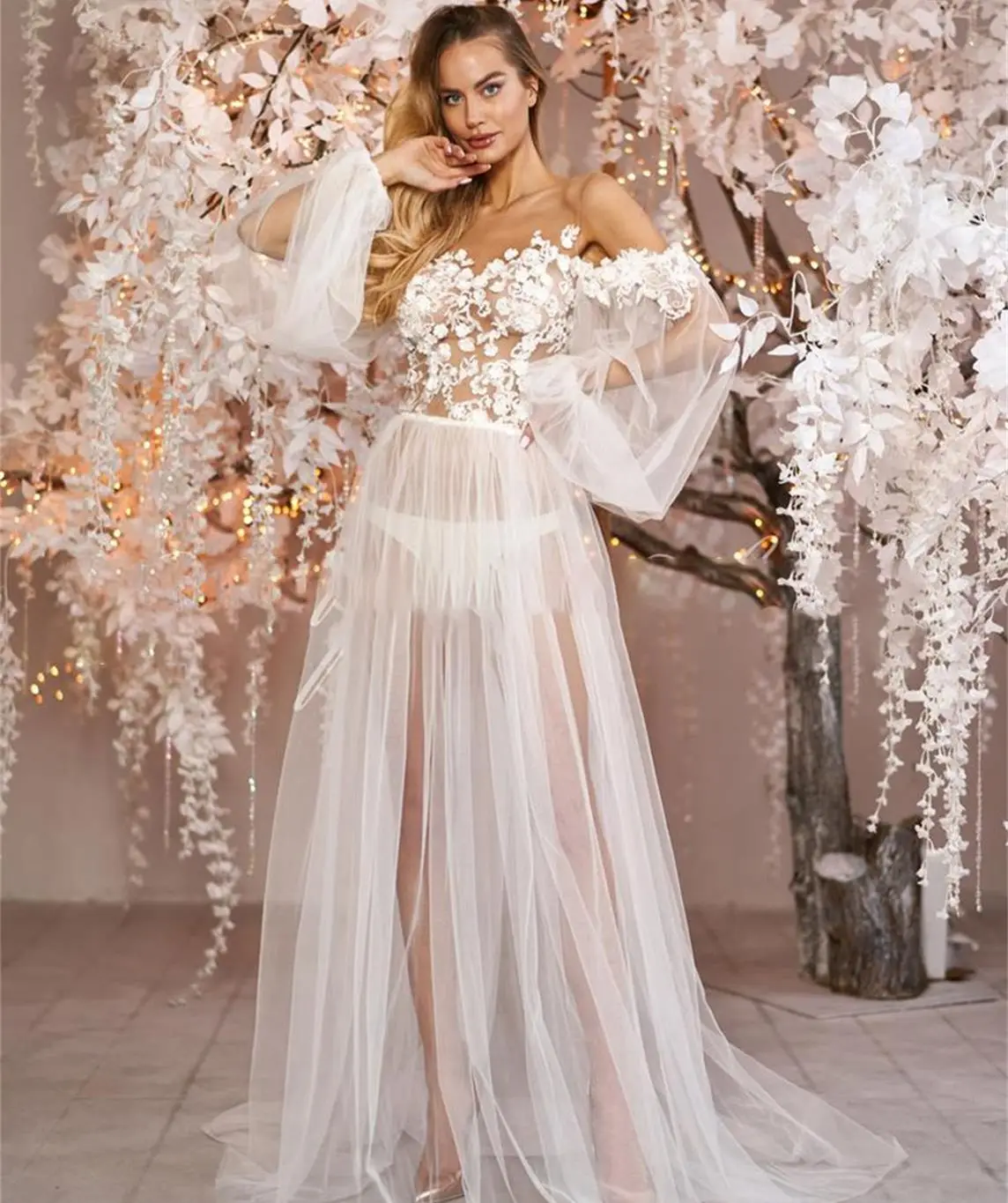Женский халат-кимоно, Свадебный халат, иллюзия, будуарная одежда для сна, нижнее белье, ночное белье