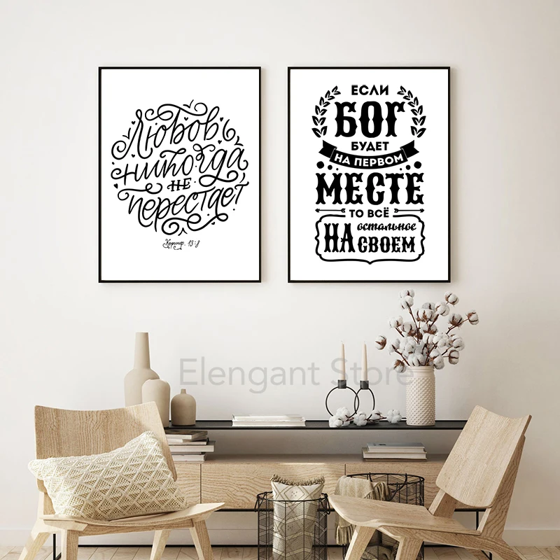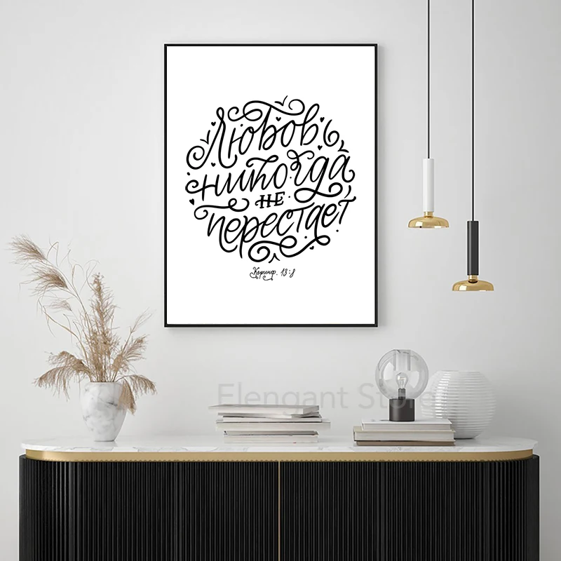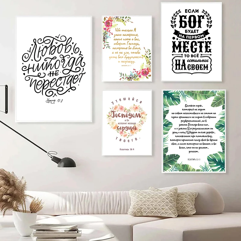 Русские версии из Библии, цитаты, холст, живопись, постер на тему религии, любовь, никогда не выходит из строя, русская каллиграфия, принты, настенное искусство, картины, Декор